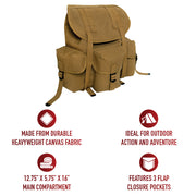- Made from Rothco’s durable heavyweight canvas fabric, this superior material is naturally water-resistant, rugged, and is built for the long haul. No one comes close to Rothco’s collection of ultra-premium canvas bags and packs.