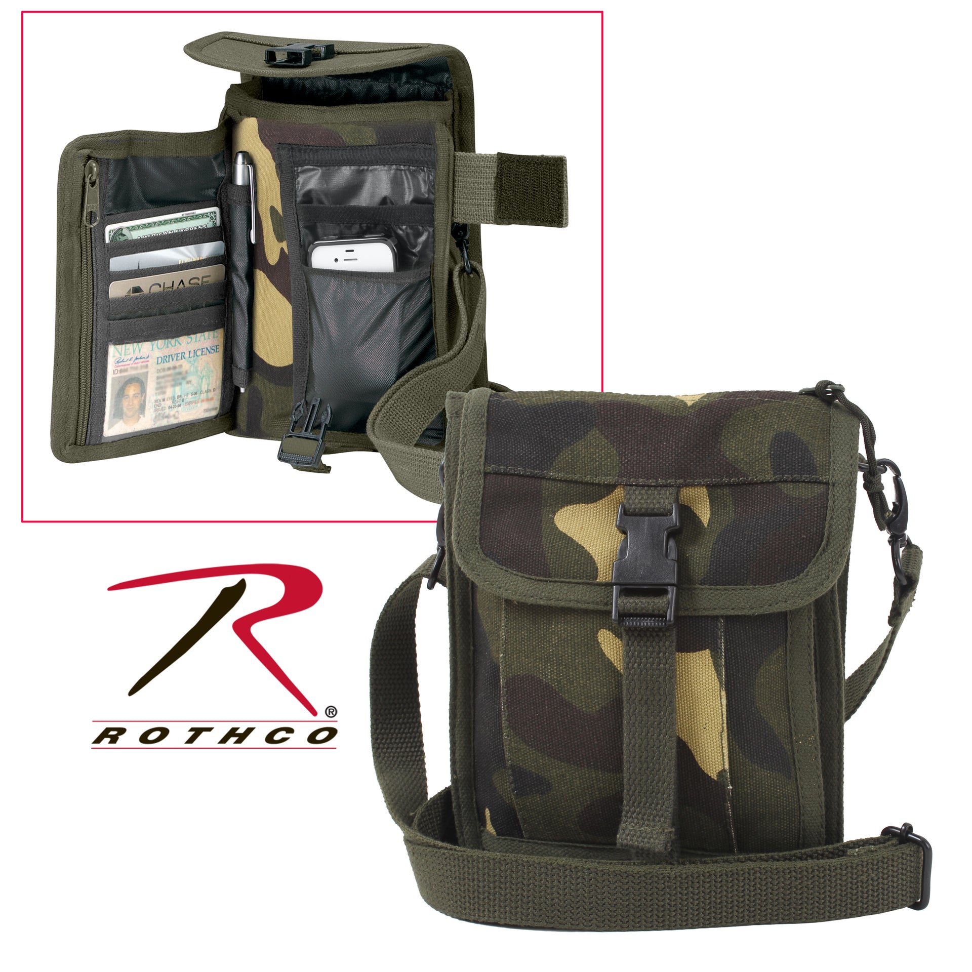 • Made from Rothco’s durable heavyweight canvas fabric, this superior material is naturally water-resistant, rugged, and is built for the long haul. Consisting of 22 oz (Woodland Camo is 18 oz) heavyweight, double-stitched cotton canvas material, these travel pouches are built tough and feature metal hardware that’ll withstand rigorous outdoor use. The water-resistant nylon lining provides additional protection, allowing you to stay the course without worrying about your items. No one comes close to Rothco’s collection of ultra-premium canvas bags and packs.