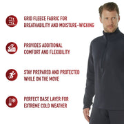 Get ready to combat the cold with our ECWCS Gen III Level II Underwear Top. Made from breathable, mid-weight grid fleece material that is great for layering, the thermal base layer military shirt is designed to keep you warm, comfortable, and dry, even in the harshest winter weather. The waffle thermal also features anti-microbial and anti-odor defense, ensuring that you stay fresh and clean through winter combat missions and cold weather activities. Stay Warm & Dry: The base layer t-shirt wicks sweat and moisture away for optimum comfort, swiftly transferring it to the top layer for a quick dry. This allows you to move freely without your clothing sticking to you, ideal for winter operations, hiking, camping, skiing, snowboarding, hunting, and other outdoor activities. Comfortable Fit: Built from a soft polyester / spandex blend, the grid fleece fabric easily flexes and contorts with your body for optimum comfort. The zip collar allows the long sleeve undershirt to be worn as a turtleneck for additional protection. The extended back tail ensures total coverage when crouching or moving, while the thumb holes keep your sleeves in place. Active-Duty Approved: The thermal shirt is part of the Extended Cold Weather Clothing System (ECWCS) and is a must-have for any military personnel, tactical professional, or outdoor enthusiast in cold climates. Whether you are gearing up for a mission or camping up in the mountains, you will want to keep a pair on you. Better Together: Stay warm and comfortable this winter with our matching ECWCS Gen III Level II Underwear Bottoms. The base layer pants feature the same breathable, mid-weight grid fleece material as the top, ensuring that you’re ready for the mission at hand.