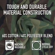 - Go ahead and wear your digital camo shirt without a worry! The reliable 60% cotton / 40% polyester blend easily withstands consistent use. The reinforced seams at the collar, sleeves, and bottom hem further enhance the shirt’s durability, and with a tag-less neck label, you’re free to move around without any itches or scratches.