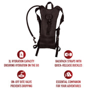 Stay hydrated on the move with Rothco's 3 Liter MOLLE Backstrap Hydration System. Engineered for outdoor enthusiasts, this pack is perfect for extended activities like hiking and camping. Its durable design, innovative features, and MOLLE compatibility make it an essential companion for your adventures.