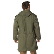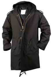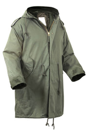 Conquer the cold with Rothco's Fishtail Parka, a perfect blend of style and functionality. Crafted from 100% cotton, this parka boasts a polyester button-in liner for added warmth, ensuring you stay comfortable in chilly weather. The snap-up back flap adds a unique touch while providing ventilation when needed. The brass zipper with a snap-up storm flap offers enhanced protection against the elements. Enjoy a customizable fit with the drawstring hood, waist, bottom, and adjustable wrist cuffs. Classic service-style button-down epaulets add a timeless touch, and the 2 front flap pockets provide secure storage for small essential gear.