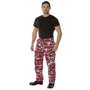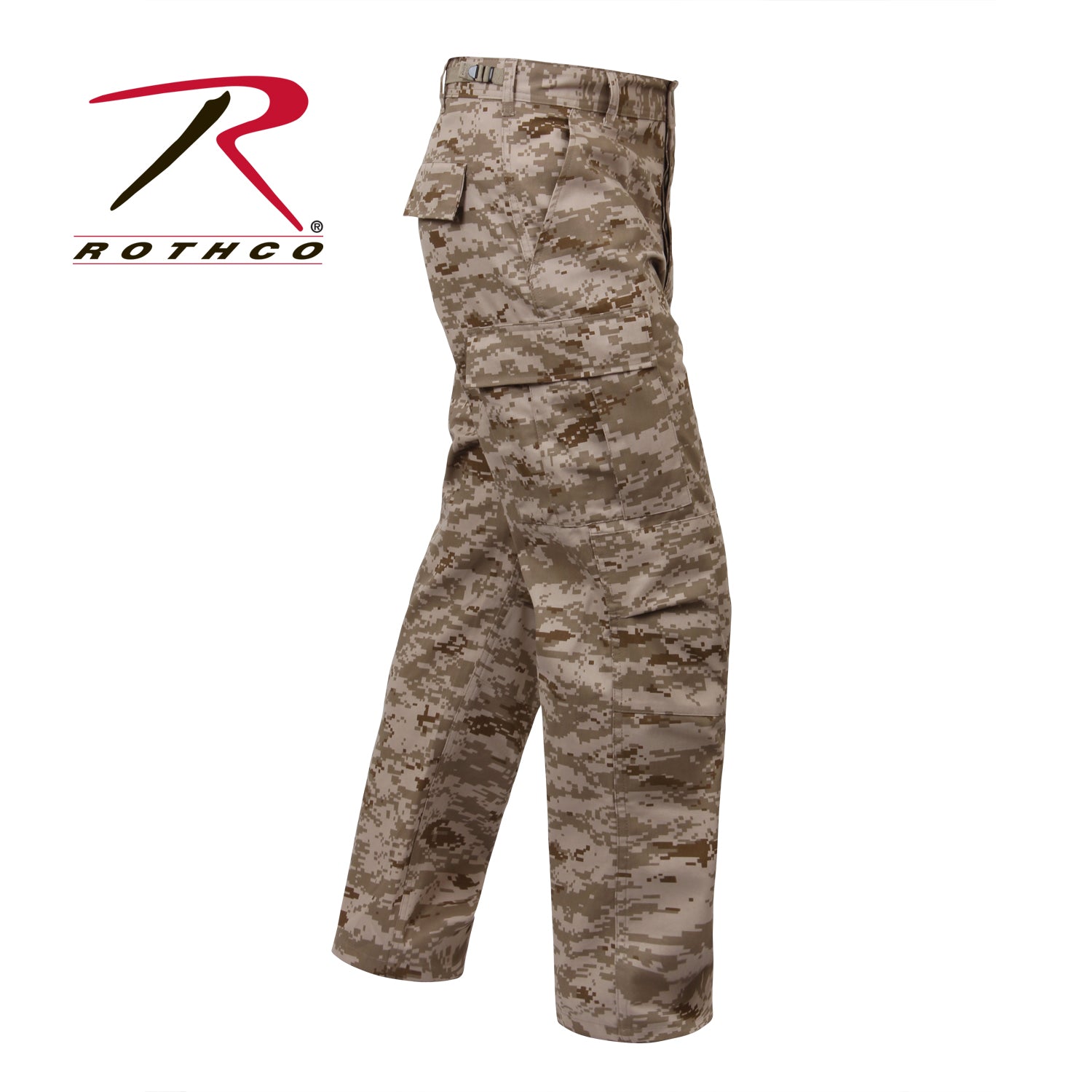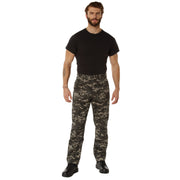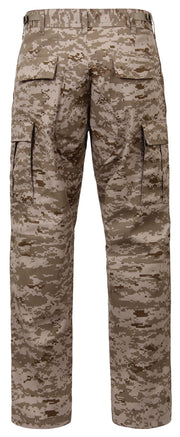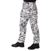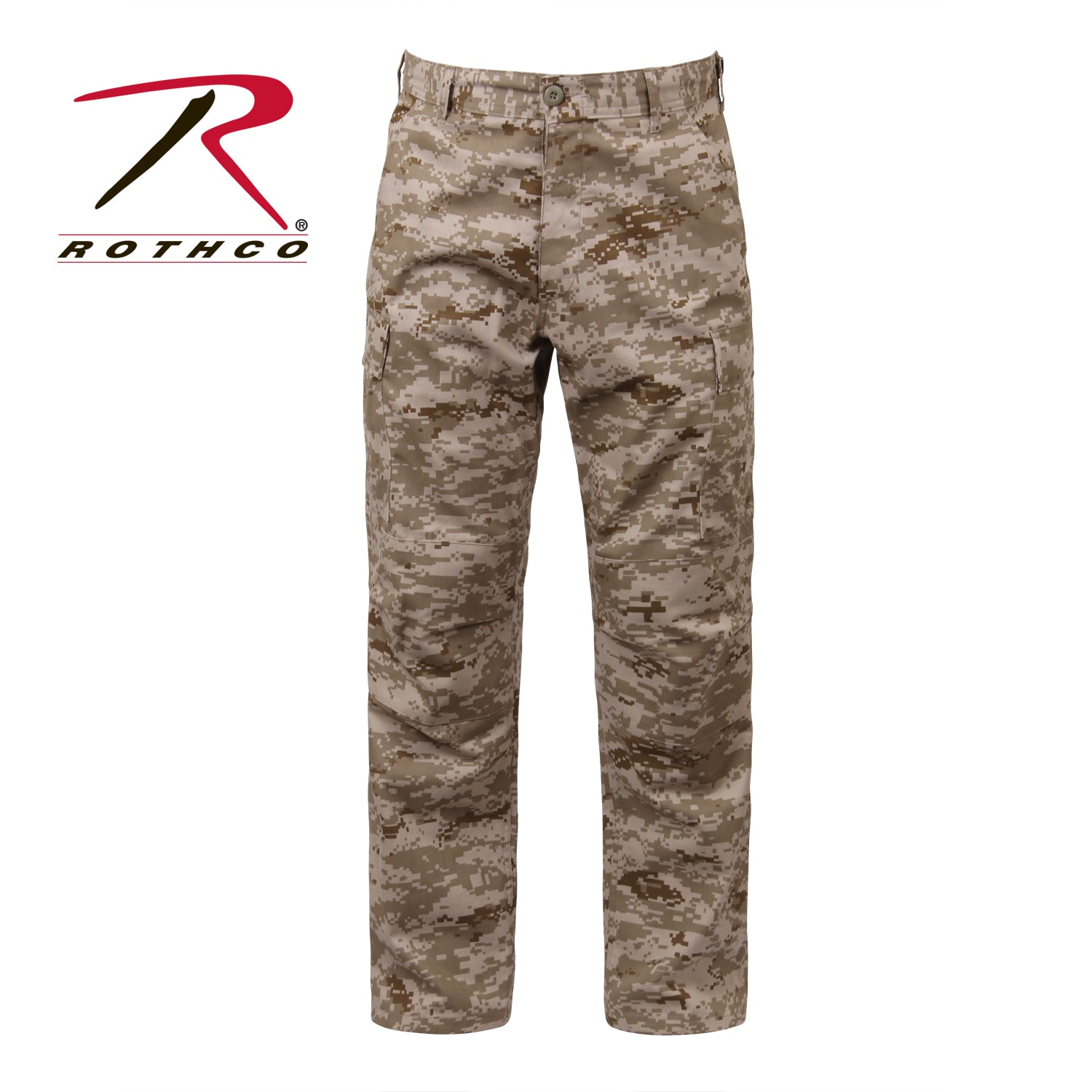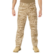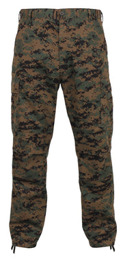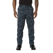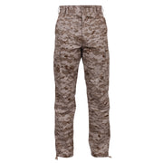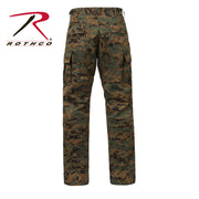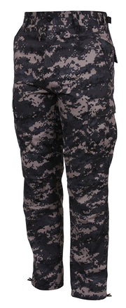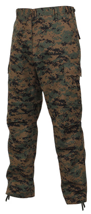 Experience over 4 decades of trusted design with our Digital Camo Tactical BDU Pants. Constructed from a robust cotton / polyester fabric blend, these military cargo pants are built for unparalleled performance and comfort. Providing flexibility, strength, and plenty of pockets, these BDUs are not afraid to get down and dirty, standing up to tough challenges during field missions, tactical operations, law enforcement duties, and outdoor adventures. Tried-and-True Reliability: These tactical military uniform pants are reinforced in the seat and knees for maximum durability that endures wear and tear while supporting a full range of motion. The wear-resistant double-stitched seams provide extra strength and years of reliable use as you train, ruck, sprint, hike, and climb. High-Capacity Cargo Pockets: The camouflage EDC cargo pants provide functional utility through a spacious 6 pocket design that consists of 2 large button-down cargo pockets, 2 front slash pockets, and 2 button-down back pockets for storing tactical gear or everyday essentials like your phone, wallet, keys, or multi-tool. Utility at the Forefront: These tactical camo hiking pants feature adjustable waist tabs that enable the perfect fit. In addition, the straight leg opening fits over boots comfortably while the drawstring ankle ties allow you to easily adjust the fit. These military BDU cargo pants utilize a button closure and fly. Action Ready: Initially designed for military personnel and tactical professionals, these adaptable and reliable tactical cargo pants are great for backpacking, camping, hiking, hunting, fishing, working, public safety, skateboarding, everyday wear, and more.