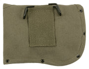 Rothco’s Canvas Axe Sheath with snap closure is constructed of durable canvas material. The convenient belt loop on the back allows you to hang it at your side when not in use and is ideal for keeping you and your axe protected. From the seam to end the axe sheath is measured at 6” and from top to bottom it is 4”.