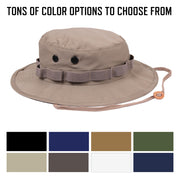 - Go ahead and wear your boonie bucket hat without a worry! Constructed from a durable 55% cotton / 45% polyester blend, these bucket hats easily withstand consistent outdoor use and sun exposure while providing a comfortable fit and feel.