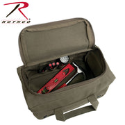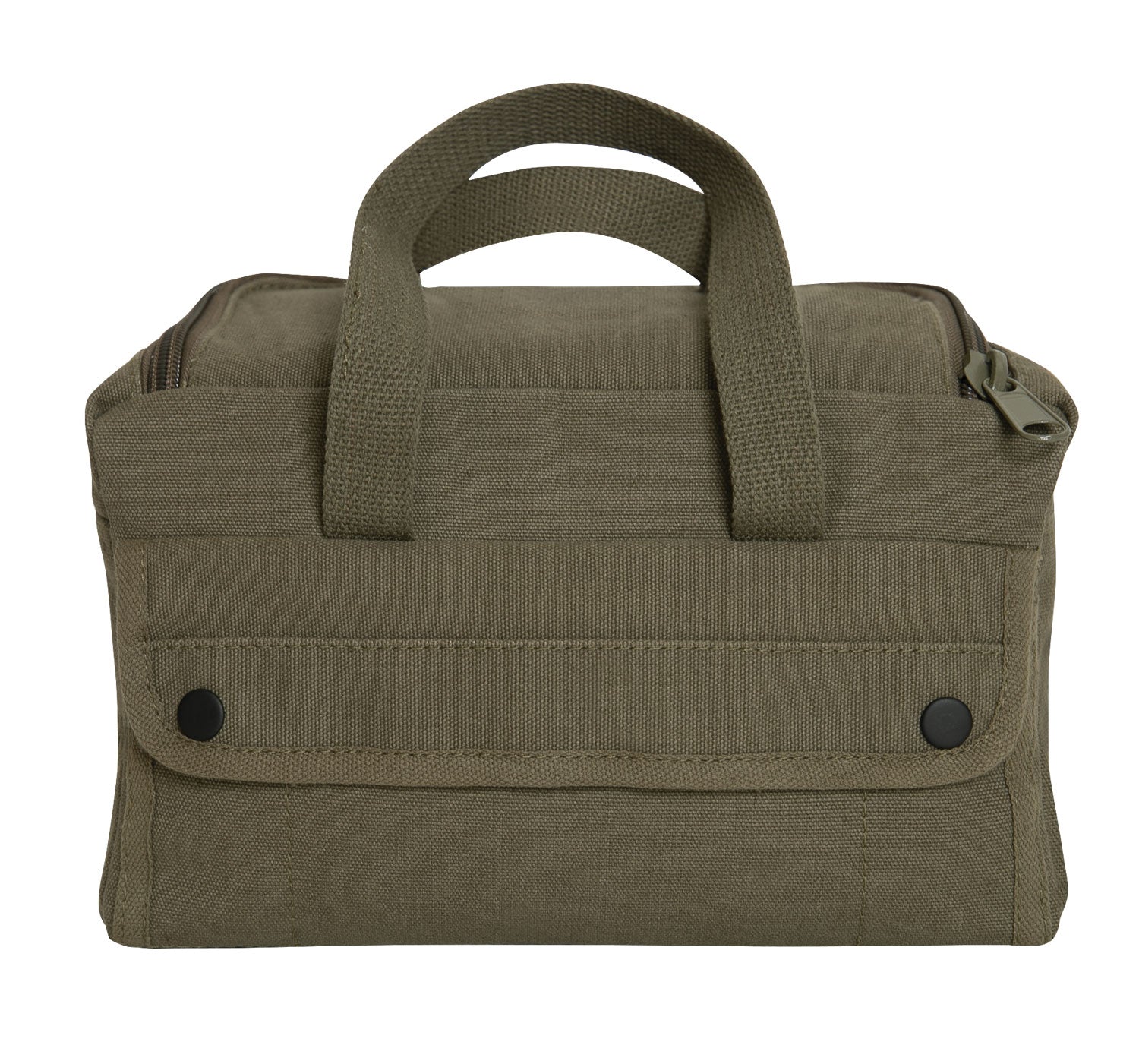 Inspired by the classic service mechanic's tool bag, this wide mouth version is a great alternative to a traditional metal toolbox. Crafted with rugged heavyweight canvas, it offers durability for storing all your tools. With a U-shaped zipper design, it provides easy access to the interior, while 8 organizer pockets help keep your tools organized. 2 outside snap pockets offer additional storage for small items, and a hard plastic bottom insert ensures stability when the bag is open. The sturdy reinforced top carry handles make it easy to transport your tools wherever you need them. Perfect for mechanics, DIY enthusiasts, and anyone in need of reliable tool storage on the go. Made from Rothco’s durable heavyweight canvas fabric, this superior material is naturally water-resistant, rugged, and is built for the long haul. No one comes close to Rothco’s collection of ultra-premium canvas bags and packs.