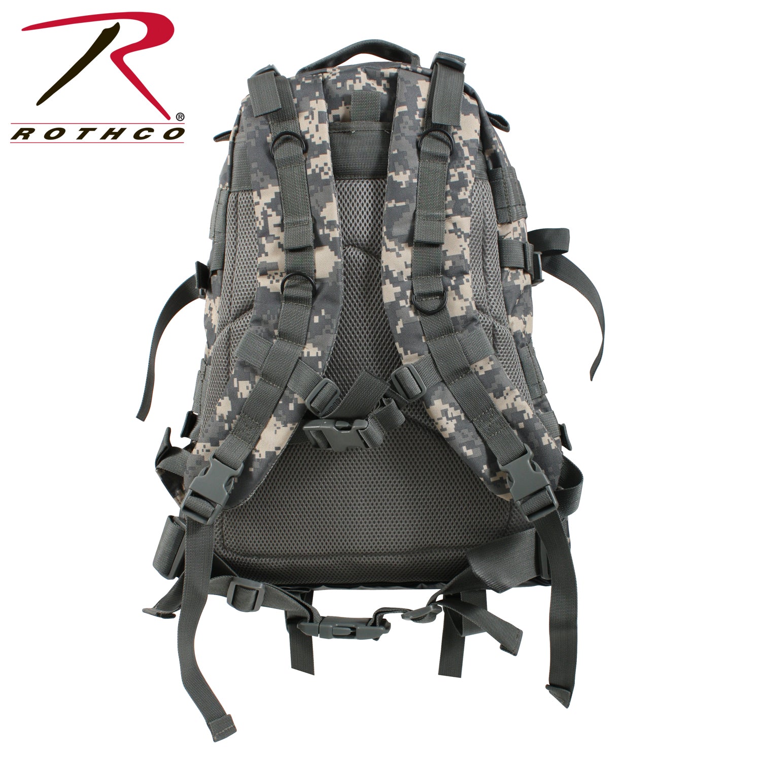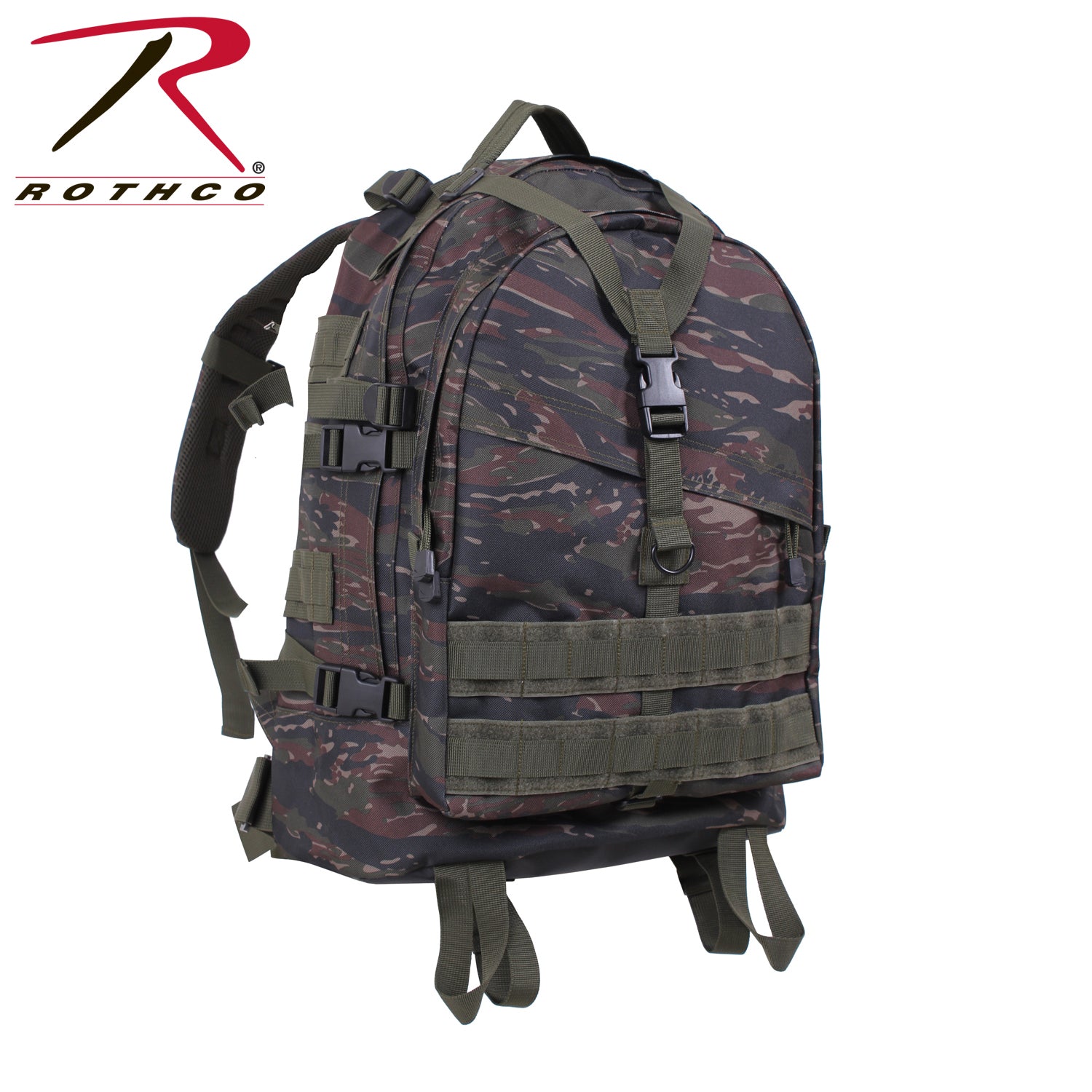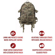 Rothco's Large Camo Transport Pack is designed to meet all your tactical and outdoor adventure needs. With dimensions of approximately 19 inch x 15 inch x 8 inch, it offers ample storage space for your gear. Equipped with a hydration bladder-compatible pouch, you can stay hydrated during long treks. The lining and pockets feature a water-repellent coating to protect your belongings from moisture and the elements. Heavy-duty zippers with main compartment zippers extending the length of the bag allow for easy access and storage of your essentials. Additionally, the pack features a removable waist belt to aid in weight distribution and pack stabilization. The adjustable padded shoulder straps with quick-release buckles ensure a comfortable fit and allow for quick removal or dropping of the bag in case of an emergency. This MOLLE-compatible tactical bag is made of heavy-weight polyester material for durability (except for Multicam, which is made with 1000D Cordura Nylon fabric). The front zippered compartment with an exterior zippered pouch provides convenient storage options. The padded mesh back adds comfort and ventilation during extended wear. With a drag handle, quick-release top and side adjustable web straps, and a cinch strap, this pack offers versatility and functionality. Available in various camouflage colors, including Multicam, it allows you to blend seamlessly into your surroundings. The MOLLE compatibility allows you to attach additional pouches and accessories, while the large main compartment features an interior mesh zippered pocket for organization. Whether you're on a hiking trip, camping excursion, or outdoor adventure, the Rothco Large Camo Transport Pack is your reliable companion for carrying all your essentials comfortably and securely. Rothco stands out as the leader in camouflage clothing and accessories. With a rich heritage spanning over 7 decades, we have honed our expertise in crafting durable and effective camouflage gear. Our extensive range of products, including apparel, bags, and gear, showcases a diverse selection of camouflage, with over 35 patterns available! From outdoor enthusiasts and active-duty personnel, to skate and fashion, Rothco is the go-to brand for camo.