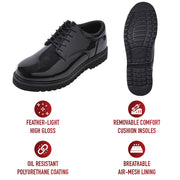 - Get work done in style with these feather-light high-gloss oxfords! These dress shoes feature an easy-to-care-for, inspection-ready mirror finish that looks great on the job.