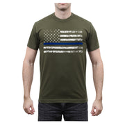 Show unwavering support for first responders and public safety officials with Rothco’s Thin Blue Line T-Shirt. Crafted from a soft cotton/polyester blend (100% cotton for Desert Sand with Black Flag), this graphic shirt features a distressed US Flag with a symbolic thin blue line printed on the chest. The tag-less label enhances comfort, making it ideal for extended wear. By wearing this shirt, you express respect and support for those who serve and protect. Not only does this tee make a powerful statement, but proceeds from your purchase also contribute to supporting the families of fallen first responders. Wear your commitment proudly with Rothco’s Thin Blue Line T-Shirt.