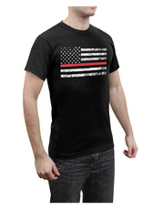 Show unwavering support for firefighters with Rothco's Thin Red Line Flag T-Shirt. Crafted from a long-lasting 60% cotton / 40% polyester blend, this printed t-shirt ensures extreme softness and durability for everyday wear. The tee features a distressed US flag print with a red line, symbolizing the camaraderie and sacrifice of firefighters and first responders. The shirt comes with a tag-less label for added comfort. Not only does it make a powerful statement, but proceeds from your purchase also contribute to supporting the families of fallen first responders. Wear your commitment proudly with Rothco’s Thin Red Line T-Shirt.