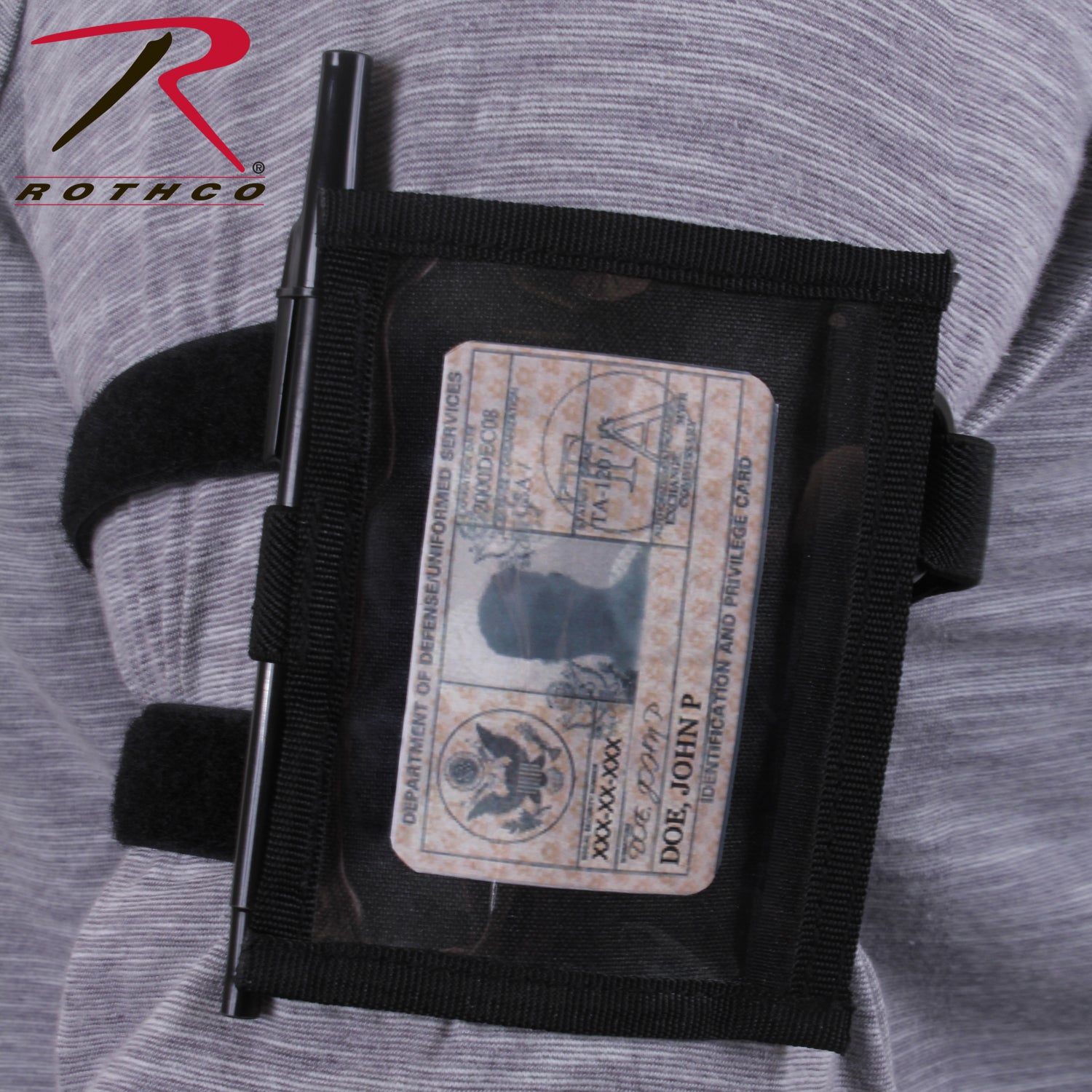 Rothco’s Military Style Armband ID Holder allows for a quick and easy display of identification held visibly on your arm. The identification window is fasted by hook and loop closure, and measures 4.25 Inches x 3.25 Inches, securely holding your ID or license in place. The tactical arm band ID holder’s pen holder provides easy access to a writing utensil, perfect for quickly jotting down notes. Dual adjustable elastic straps with hook and loop closures let you customize this military style ID holder to a snug fit on your arm. This hands-free ID holder is constructed with nylon and polyester for unparalleled durability.