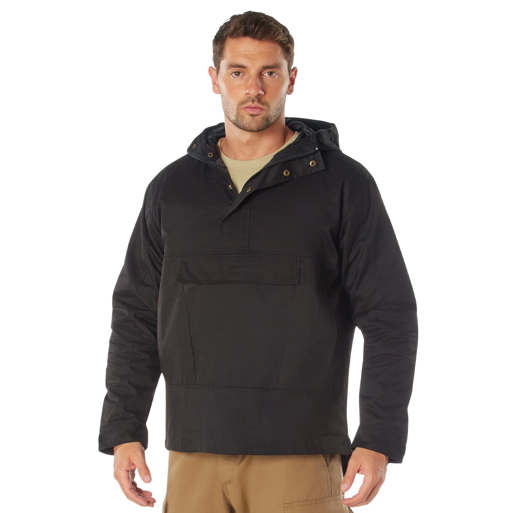 Experience the ultimate blend of comfort and functionality with Rothco's Anorak Parka. Crafted with a durable cotton-poly blend, this pullover jacket offers unbeatable comfort and long-lasting performance, making it ideal for both outdoor excursions and everyday wear. Designed to withstand the elements, it features a lightweight polyester interior lining that provides added warmth without sacrificing breathability. The lined hood ensures protection from wind and rain, keeping you dry and comfortable in changing weather conditions. Equipped with a large centered zipper pocket, this anorak parka offers convenient storage for your everyday essentials, allowing you to keep your belongings close at hand wherever you go. Its quarter zip main closure facilitates easy layering, making it versatile enough to wear over your favorite shirts or under heavier jackets for extra warmth. For a personalized fit, the hook and loop adjustable cuffs ensure a snug sleeve fit, keeping out cold drafts and sealing in warmth. Whether you're exploring the great outdoors or navigating urban landscapes, Rothco's Anorak Parka provides the perfect combination of style, comfort, and functionality to keep you prepared for whatever adventures come your way.