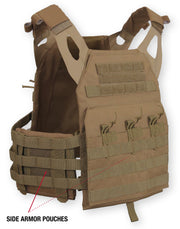 Rothco's LACV (Lightweight Armor Carrier Vest) Side Armor Pouch Set is designed to work with our Lightweight Amor Plate Carrier Vests, the pouches feature two 6" straps that attached to the armor plate pouches to the cummerbund of the tactical vest, a fold over hook and loop flap secures the plates. The tactical plate carrier pouch measures 5.75" X 5.75" X .5" and is sold two per set.