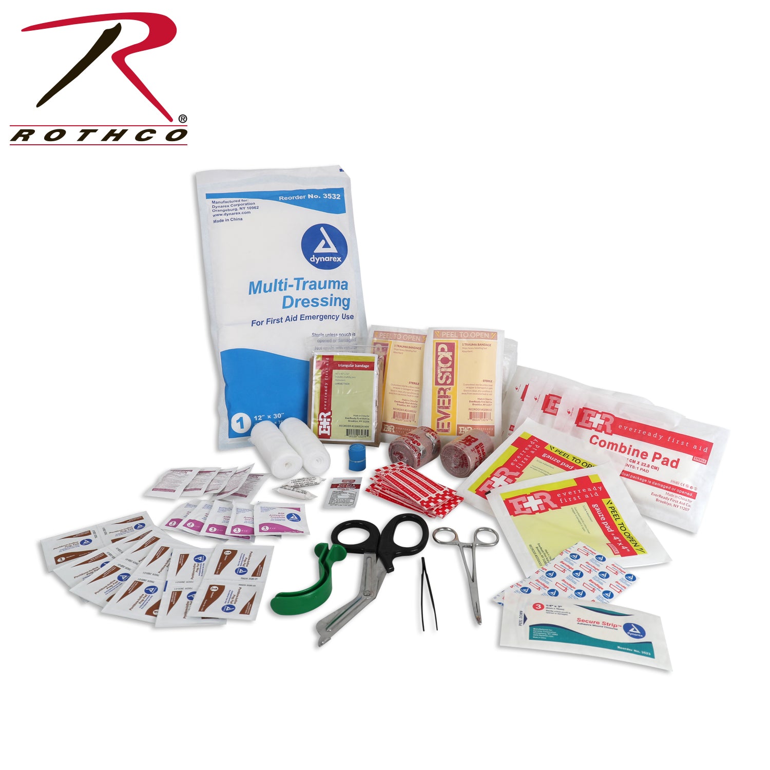 Rothco’s Fast Access Tactical Trauma Kit is your go-to solution for emergency preparedness, packed with over 80 essential first aid supplies in a durable and versatile Tactical Convertipack. The medical kit is designed for fast accessibility, allowing you to carry it as a waist pack, sling bag, or front pack, depending on your needs. With multiple compartments, including a large main compartment with an interior mesh pocket, 2 zippered side pouches, and a zippered front pouch with 3 interior pockets, it offers organized storage for all your first aid essentials. The emergency kit also includes MOLLE compatibility and 4 d-rings, making it easy to attach to other tactical gear. Built from heavyweight polyester, this trauma kit is both durable and adaptable. It also features an adjustable/removable shoulder strap for customized comfort. Please note this item has Hazmat restrictions and cannot be shipped via air freight. Other restrictions may apply.