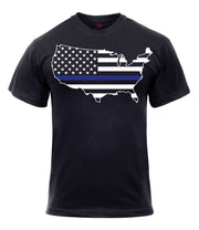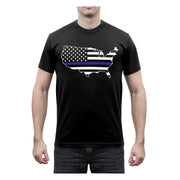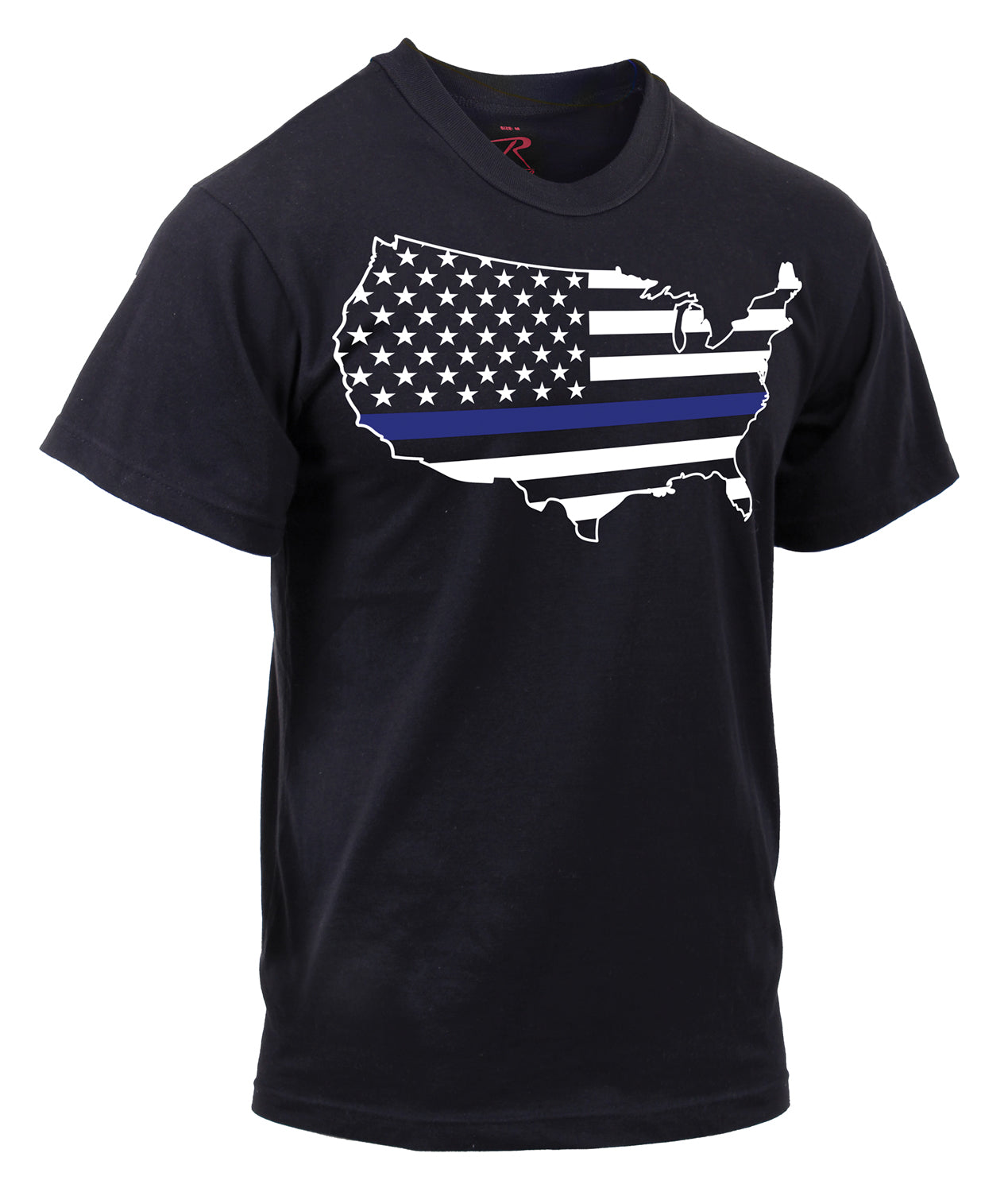 The Thin Blue Line is a symbol of respect and support for Police and Law Enforcement Officials; show your support with the Rothco’s Thin Blue Line America T-Shirt. This police line shirt features an American map shaped Thin Blue Line flag print on the centered chest, and it made of a super soft and lightweight 60% cotton / 40% polyester blend material. The tagless label allows you to wear this USA map Thin Blue Line shirt with the utmost comfort.