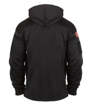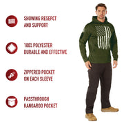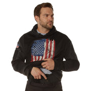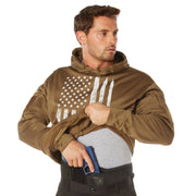 Unleash tactical utility and style with Rothco’s Concealed Carry U.S. Flag Hoodie. Crafted from high-performance 100% polyester, it features a pass-through kangaroo pocket with quick access. The distressed U.S. flag print adds a patriotic touch. Sleeve details include zippered pockets for essential gear, a loop patch for morale patches, and two pen pockets. Thumbhole cuffs offer added comfort and functionality, making it the perfect blend of fashion and function for active-duty personnel.