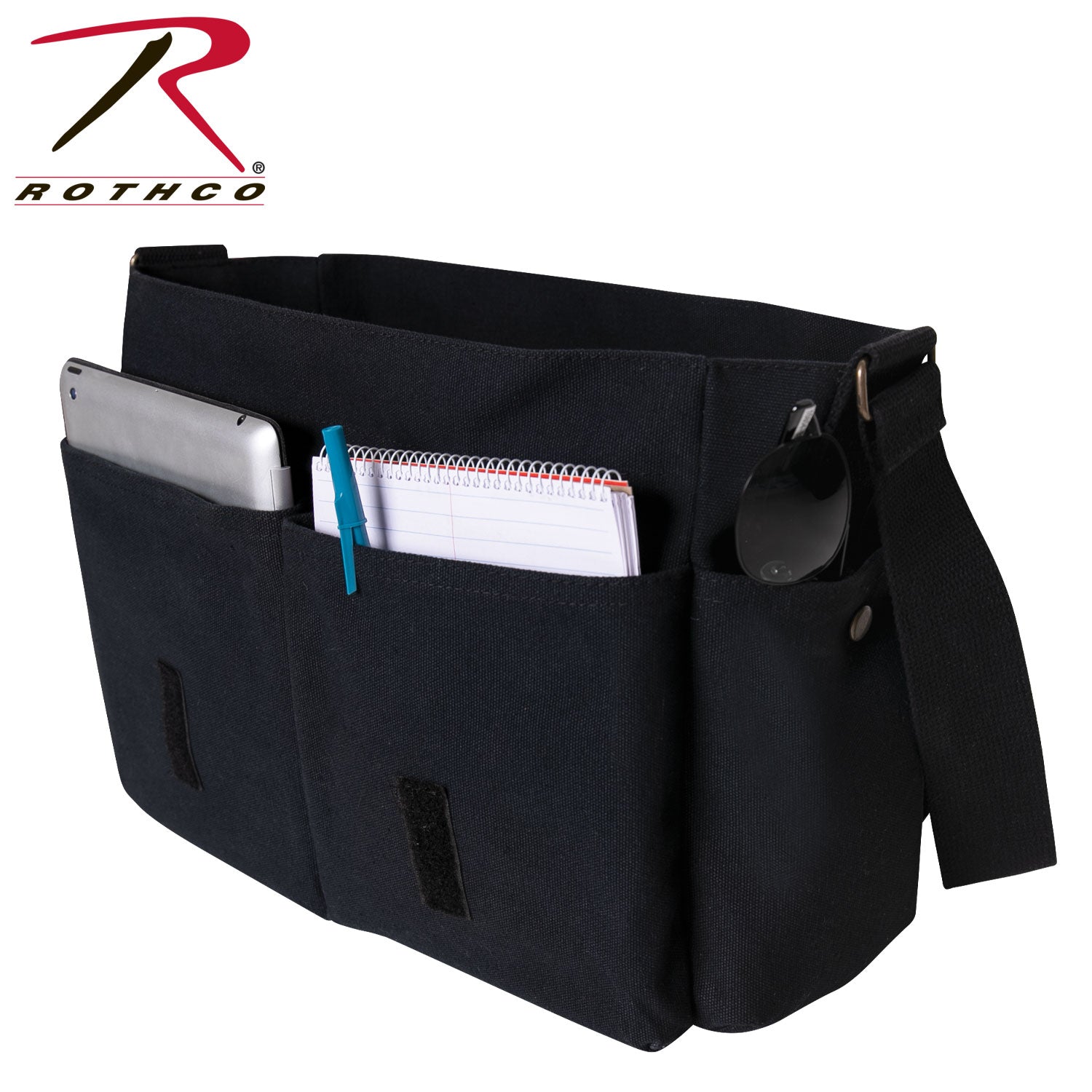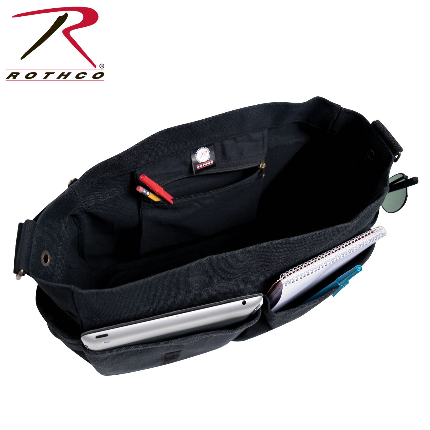 Proudly display your support for the United States with Rothco’s Distressed U.S. Flag Canvas Messenger Bag. The messenger bag’s design features unwashed double-stitched heavyweight cotton canvas material, brass hardware, and a large horizontal distressed red, white, and blue U.S. flag on the hook and loop flap closure. Measuring 15" X 11" X 6", the main compartment provides a vast amount of storage space for your books, folders, a small laptop, and other essential items. Additional gear can be stored in the two open-top front pockets, snap button side pockets, and the interior zippered pocket. The flap closure features two canvas loops on the front for added gear attachment. Carry the military messenger bag as a shoulder bag or cross body bag with the adjustable shoulder strap (extends to 52”). Rothco’s American flag messenger bag is perfect for military personnel, students, or travelers looking for a convenient and versatile shoulder bag to carry all the gear they need.
