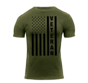 Rothco’s Veteran Flag T-Shirt is a tribute to those who have served, featuring a striking vertical American flag with “Veteran” lettering running down the full length of the flag design. Crafted from a lightweight cotton/polyester blend, this graphic tee offers superior comfort and durability. The reverse distressed US flag graphic on the right sleeve adds a rugged touch while representing forward motion and American tradition. Designed with a tag-less neck label for added comfort, this t-shirt is perfect for everyday wear. The American flag shirt features a standard fit, providing room and flexibility, ideal for a range of activities with extended coverage. Show your pride and support with this Rothco’s Veteran Flag T-Shirt.