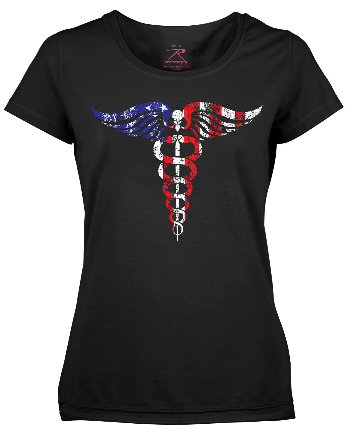 Rothco Women's Medical Symbol (Caduceus) Long Length T-Shirt - Black
