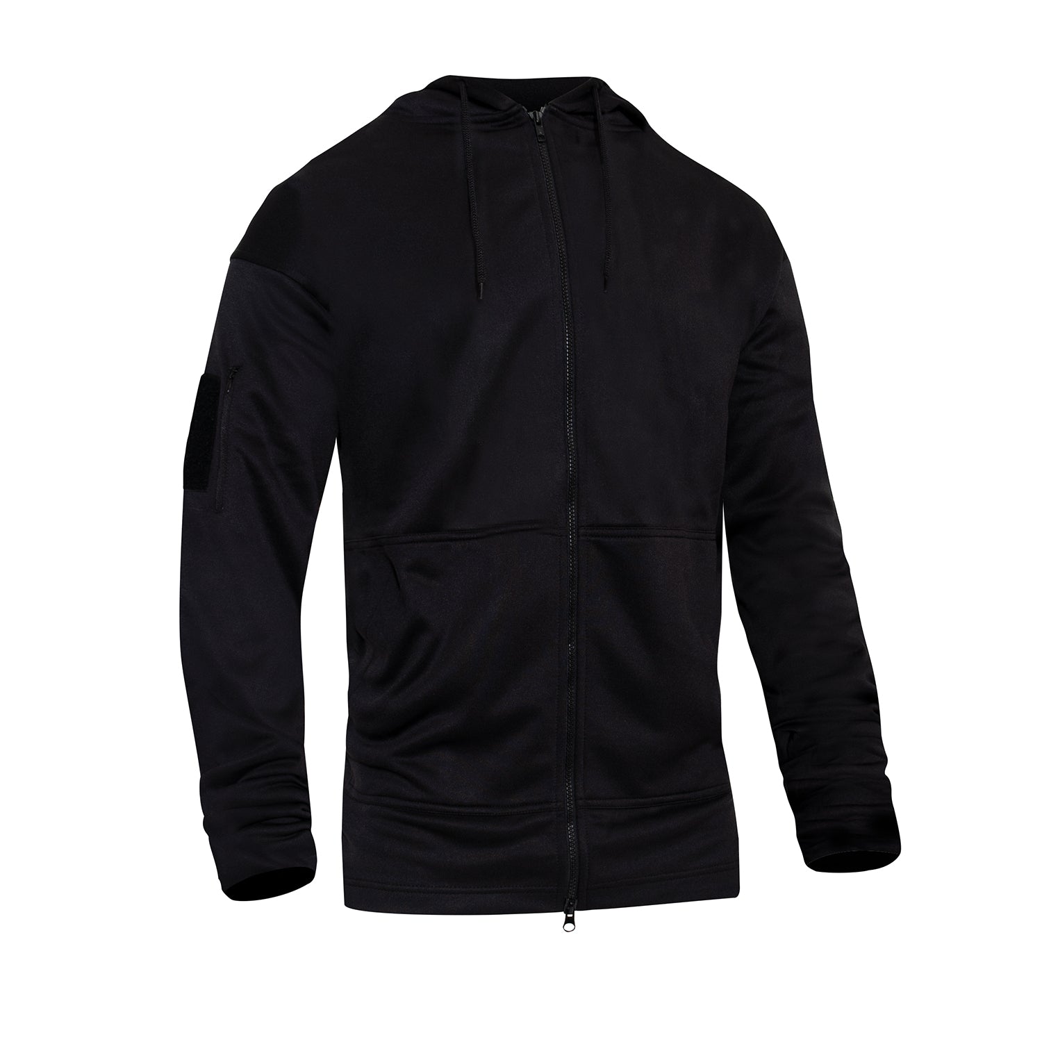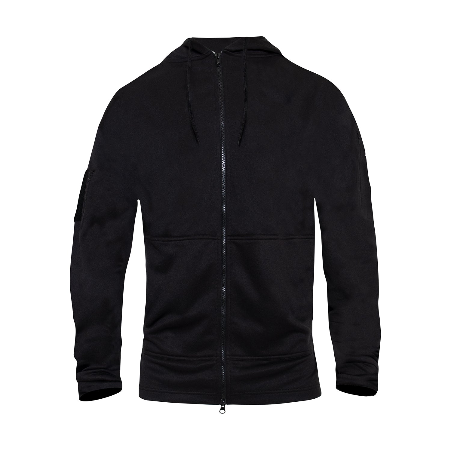 Stay comfortable and discreet with Rothco’s Concealed Carry Zippered Hoodie. Designed for quick and easy access to firearm, this CCW hoodie features dual-access pass-through pockets, ensuring you’re at the ready. Made from a high-performance material, the hoodie wicks away moisture to keep you dry and comfortable during daily wear. It’s equipped with compact utility zip-pockets on each sleeve, perfect for carrying small essential items. The left shoulder pocket includes a wire pass-through port for headphones or communication devices, while the 2-way zipper closure offers added convenience for accessing your waistband or duty belt. A loop field on the right sleeve allows for customization with flags or morale patches. Additionally, thumb holes in the cuffs prevent the sleeves from riding up, making this hoodie a functional yet comfortable option for professionals or anyone needing everyday carry gear.