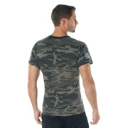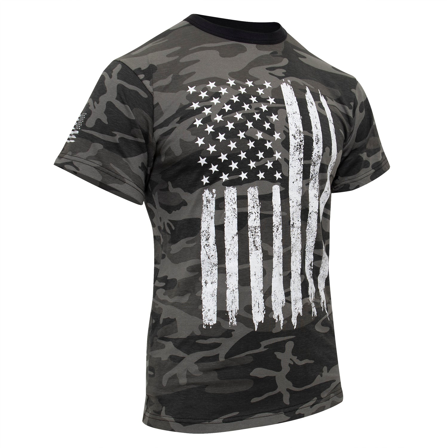 Rothco’s Camo US Flag T-Shirt is the perfect way to showcase your patriotic spirit. This graphic shirt features prominently displayed distressed USA flags on both the chest and sleeve, making a bold statement wherever you go. Constructed from a comfortable and durable 60% cotton / 40% polyester blend, this camo t-shirt is designed to last for years. The tag-less label ensures added comfort, preventing irritation during wear. Ideal for a variety of activities including exercise, outdoor sports, and casual wear, this American flag t-shirt combines style, comfort, and functionality. Whether you're hitting the gym, engaging in a team sport, or just enjoying a casual day out, Rothco's Camo US Flag T-Shirt is your go-to choice for expressing your love for the USA.
