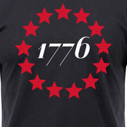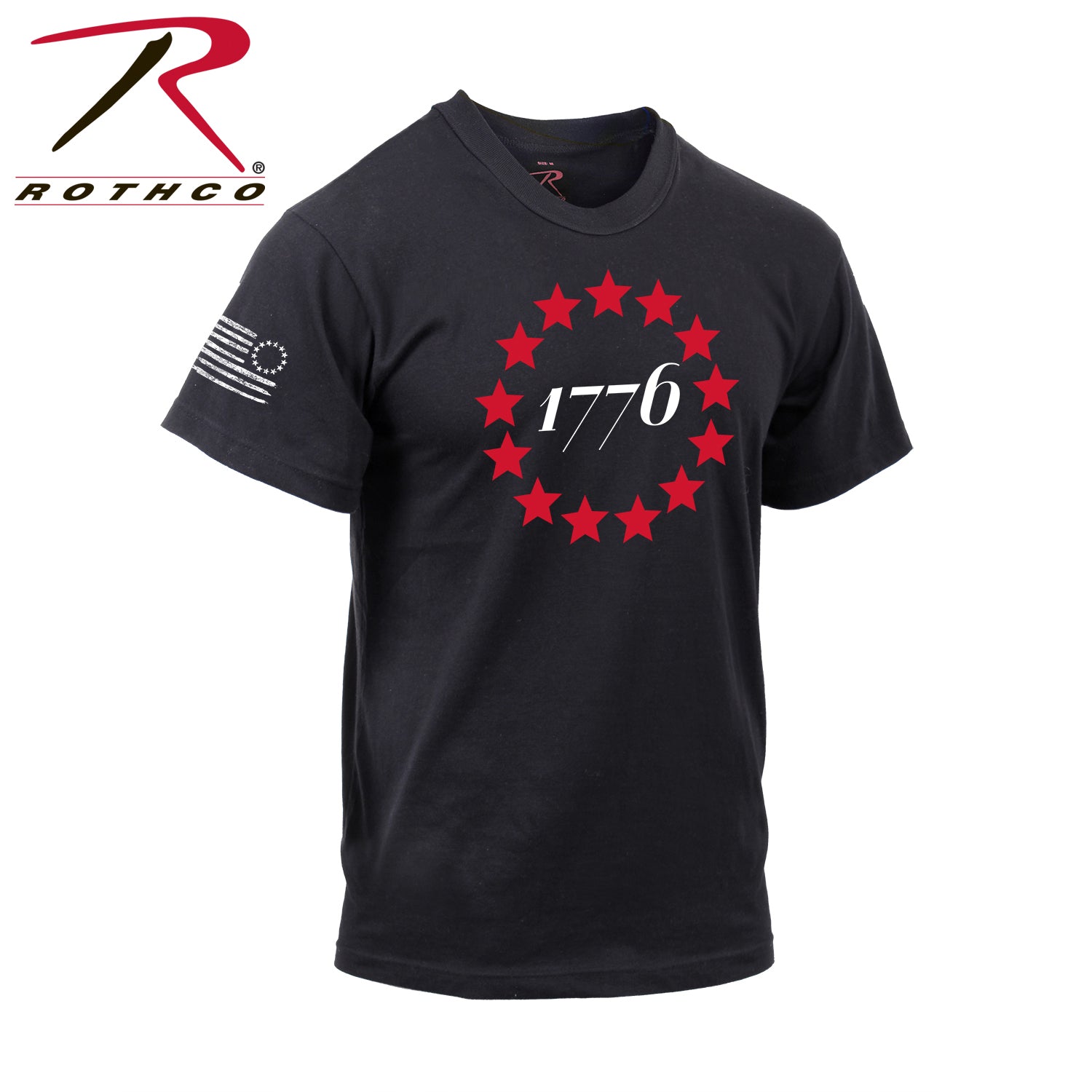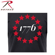 Show your patriotic pride with Rothco’s 1776 T-Shirt. This striking black tee prominently features "1776" across the chest, surrounded by the 13 stars of the iconic Betsy Ross flag. The right sleeve includes the historic Betsy Ross flag print, adding a bold and timeless touch. Made from a breathable and durable cotton blend, this shirt ensures all-day comfort while maintaining its rugged wearability. The tagless design, with sizing information printed inside, enhances comfort by eliminating irritation. Whether for workouts, casual outings, or patriotic celebrations, this versatile tee combines style, comfort, and a proud nod to American history.