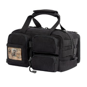 An enhanced take on your classic military mechanics tool bag. A spacious and supported main zippered compartment on this tool bag contains individual slots to store tools and other gear while the front of this mechanics bag includes a large external zippered pouch with an identification window. The tactical bag’s front exterior features dual small zippered pouches to pack smaller essentials. A rear drop-down compartment contains pen/flashlight slots, cardholders, multiple rows of MOLLE webbing and a removable and expandable snap closure pouch, all the features you need in a mechanics tool bag. There are MOLLE loops on the back and sides of this canvas bag to attach additional accessories with security. The bag's carry handle features hook and loop closure options to keep straps together when transporting the military bag from one site to another. This tool kit made with cotton canvas and polyester lining for heavy duty durability. The MOLLE bag measures: 12 Inches x 10 Inches x 6.25 Inches.
