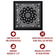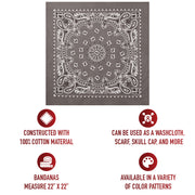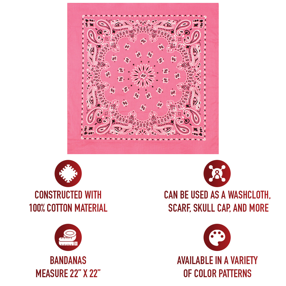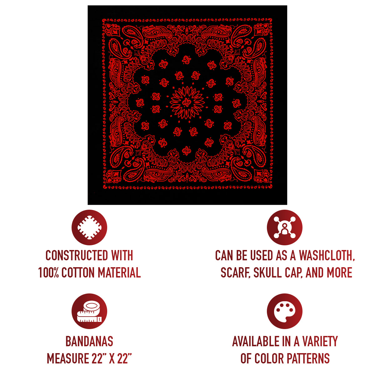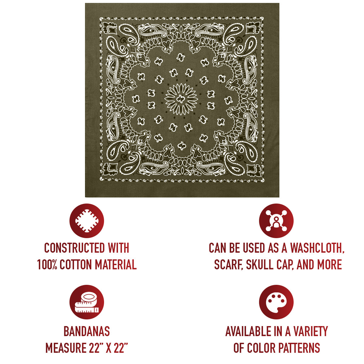 Discover endless possibilities with Rothco’s Trainmen Paisley Bandanas. Made from 100% cotton, these classic 22 inch squares come in various colors and serve as washcloths, scarves, skull caps, headbands, and more.