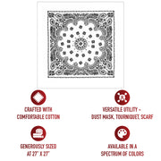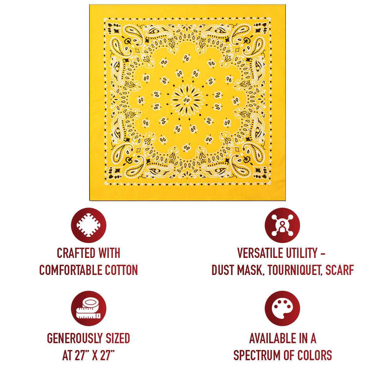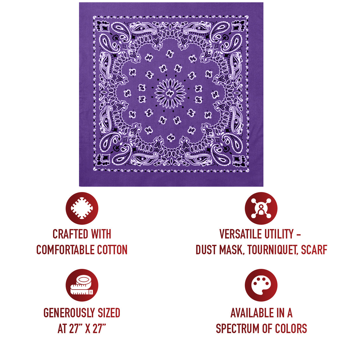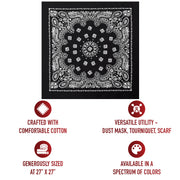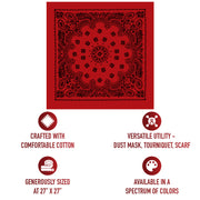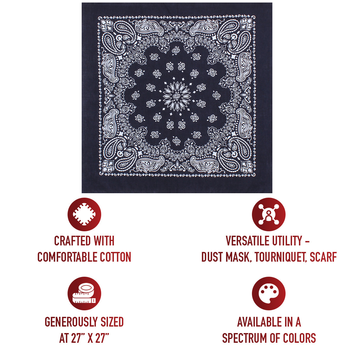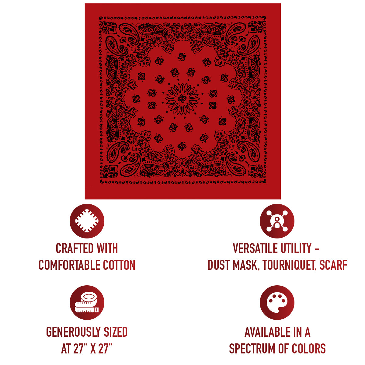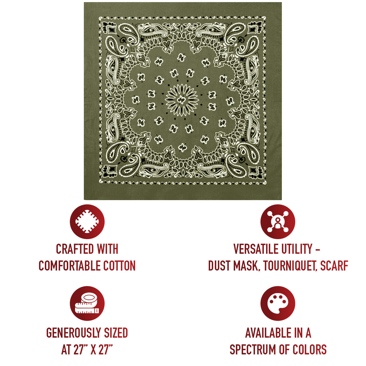 Discover versatility with Rothco's 27-Inch Trainmen Paisley Bandanas. Beyond classic paisley design, these extra-large cotton bandanas serve various purposes—use as a washcloth, scarf, skullcap, headband, and more. With a variety of colors, these bandanas are a timeless accessory for daily wear and outdoor adventures.