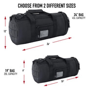 Gear up for action and adventure with our Tactical Traveler Duffle Bags, offering an all-in-one place to carry your tactical equipment, EDC gear, and travel essentials. The equipment bag features a wide mouth main compartment with a dual zipper handle closure for quick and easy access, ensuring you are ready at a moment’s notice. The military duffle bag makes for a great bugout bag and offers unbeatable off-road recovery storage. Rugged Material Construction: Engineered with tough, water-resistant PVC backed polyester, these tactical bags easily endure field missions and outdoor expeditions. Whether you are out traveling or heading to the range, these heavy-duty duffle bags provide long-lasting durability. Safe & Secure Storage: The travel duffle bag utilizes 4 internal organizer pockets, a top zipper compartment, and 2 external zip pockets for additional storage. Carry Options: As part of Rothco’s Tactical Traveler series, the duffle bag features a low-profile MOLLE compatible design and comes equipped with a removable and adjustable shoulder strap, a removable air mesh shoulder pad, dual carry handles with a handle wrap, and a grab handle for comfortable carry while traveling. In addition, the travel bag features an ID window on the outside. Multiple Sizes Available: These tactical sport duffle bags come in 2 sizes: 19 inch x 9 inch (20 Liter Capacity) / 24 inch x 12 inch (45 Liter Capacity).