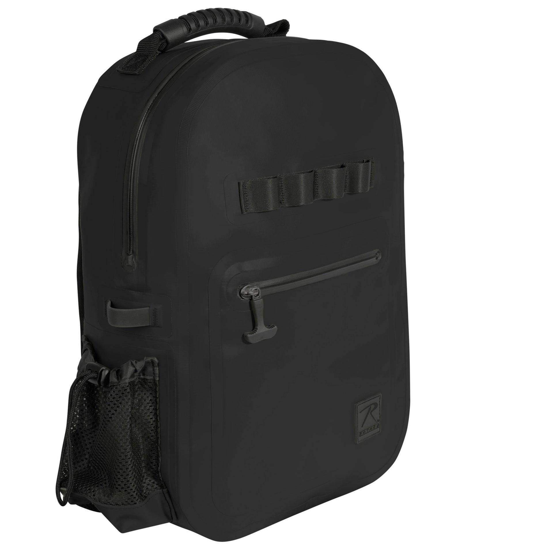 Gear up with the Waveguard Waterproof Backpack. Engineered with a heavy-duty three-layer waterproof vinyl tarpaulin shell, waterproof zippers, and tension pull tabs, the watertight backpack ensures your gear and essentials remain secure, organized, and dry. As part of Rothco’s Waveguard collection, this waterproof bag is fully submersible and meets IPX7 waterproof standards, ideal for water sport enthusiasts, outdoor adventurers, and avid travelers. Tension-Locked Waterproof Zippers: For optimal performance and protection, our Waveguard bags feature waterproof zippers that are designed with a secure zipper seal that increases tension. To ensure a full closure, always zip the waterproof dry bag completely to maintain waterproof performance; use the pull tabs for leverage when needed. All-in-One Storage: The dry bag features a main compartment and front pouch with waterproof zippers for keeping your possessions dry, along with an adjustable mesh bottle pouch on the side for additional storage. The waterproof rucksack has a 15.6L capacity and measures 16.5 inch x 11 inch x 5.25 inch overall. Utility at the Forefront: These kayak backpacks come equipped with adjustable padded shoulder straps and sternum strap for providing the perfect fit and feel while exploring the great outdoors. These waterproof hiking backpacks feature MOLLE loops for gear attachment and a molded top handle for quick and easy handling. Adventure Ready: Whether you’re on a rafting trip or spending a day out on the beach, our Waveguard waterproof bags allow you to keep your outdoor gear protected and are perfect for kayaking, canoeing, boating, camping, and hiking.