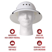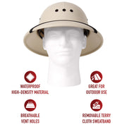 Rothco's Pith Helmet delivers optimal sun protection for outdoor enthusiasts. Crafted from waterproof high-density polyethylene, this helmet shields your head and face from the sun's harsh rays. The one-size-fits-most design, with an adjustable hook and loop strap inside, ensures a secure and comfortable fit for head sizes 6 1/2 - 7 3/4. The removable terry cloth sweatband, secured with hook and loop, adds an extra layer of comfort. Made in the USA, this tactical-style pith helmet is not just practical but also a fantastic addition to safari costumes, making your outdoor experience both safe and stylish. Keep your head in the game with Rothco’s collection of headwear and accessories. Designed with precision and purpose, our headgear is built to withstand the harshest conditions. Whether you’re tackling the cold in one of our Watch Caps or Balaclavas, or out on a mission in a Boonie Hat or Fatigue Cap, our diverse range of headwear provides unmatched comfort and protection for everyone from active-duty personnel to outdoor enthusiasts.