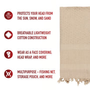 In addition to protecting your head and neck from the sun, sand, and wind in hot climates, the military shemagh also shields you from snow and other debris, while providing additional warmth in cold weather. These versatile tactical headwraps are perfect for camping, hiking, four-wheeling, and outer outdoor activities.