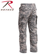 Gear up with our ACU Digital Camo Combat Uniform Pants. Featuring the Army Combat Uniform (ACU) digital camo pattern and near-military specifications, these uniform pants are great for active-duty personnel, camo enthusiasts, and more. The resilient cotton / polyester rip-stop fabric allows the combat pants to withstand training sessions and various outdoor conditions. Tried-and-True Reliability: These camo uniform pants are reinforced in the seat and knees for maximum durability that endures wear and tear while supporting a full range of motion. The wear-resistant double-stitched seams provide extra strength and years of reliable use as you train, ruck, sprint, hike, and climb. High-Capacity Storage: The ACU military pants feature a spacious 8 pocket design that consists of 2 hook & loop cargo pockets, 2 hook & loop lower leg pockets, 2 front slash pockets, and 2 back flap pockets for storing field equipment and gear. The camouflage pants also come equipped with knee pad pouches (pads sold separately). Utility at the Forefront: The digital camo cargo pants feature a drawstring waist that enables the perfect fit. In addition, the straight leg opening fits over combat boots comfortable while the drawstring ankle ties allow you to easily adjust the fit. These camouflage pants utilize a button fly. All Things Camo: Rothco stands out as the leader in camouflage clothing and accessories. With a rich heritage spanning over six decades, we have honed our expertise in crafting durable and effective camouflage gear. Our extensive range of products, including apparel, bags, and gear, showcases a diverse selection of camouflage, with over 35 patterns available! From outdoor enthusiasts and military personnel, to skate and fashion, Rothco is the go-to brand for camo.