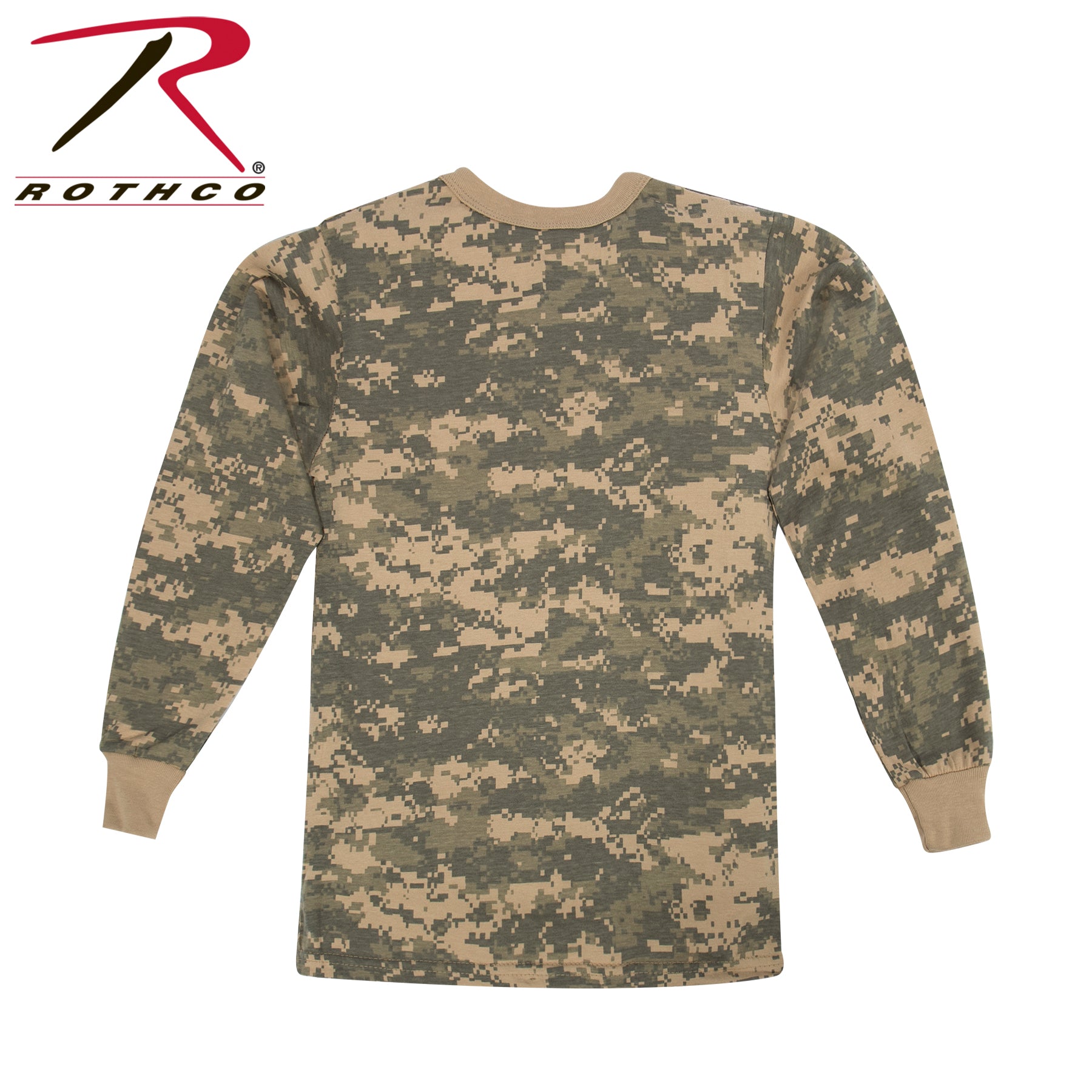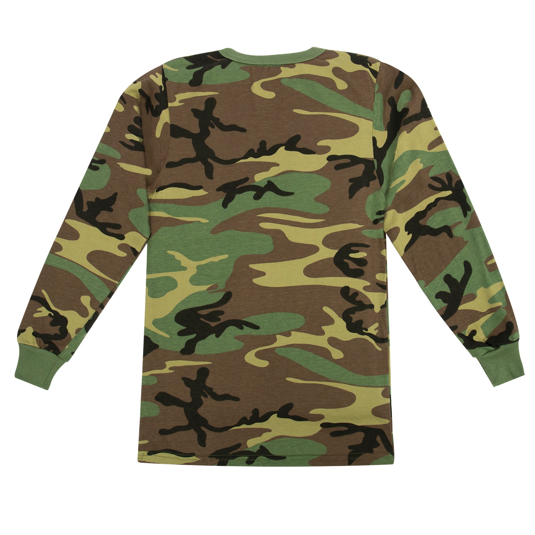 Know a kid who loves the great outdoors or military-styled apparel? Designed with highly detailed camouflage patterns, our Kids Long Sleeve Camo T-Shirts are a staple for young explorers and outdoorsmen. These crewneck t-shirts are great for hunting, fishing, camping, everyday wear, and more. Rugged and Long-Lasting: The durable 60% cotton / 40% polyester blend easily withstands vigorous outdoor use. The reinforced seams at the collar, sleeves, and bottom hem further enhance the camo shirt’s durability, and with a tag-less neck label, your child is free to move around without any itches or scratches. Great for Layering: The long sleeve t-shirt is perfect for either wearing on its own or as a base layer undershirt. It fits comfortably underneath vests, jackets, and coats. Built for the Great Outdoors: These camo t-shirts are standard fit, giving your young adventurer room and flexibility for various activities. Our shirts sit approximately at the waist for full coverage. The ribbed knit neck collar and wrist cuffs allow for a close fit without restricting movement. We’ve Got You Covered: Complete the look with a matching pair of our Vintage Paratrooper Fatigue Pants for kids, or layer up with a Kids Camo Pullover Hooded Sweatshirt or a Kids M-65 Field Jacket. All Things Camo: Rothco stands out as the leader in camouflage clothing and accessories. With a rich heritage spanning over seven decades, we have honed our expertise in crafting durable and effective camouflage gear. Our extensive range of products, including apparel, bags, and gear, showcases a diverse selection of camouflage, with over 35 patterns available! From outdoor enthusiasts and active-duty personnel, to skate and fashion, Rothco is the go-to brand for camo.