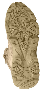 Experience unmatched comfort and efficiency with Rothco's Forced Entry 8-inch Deployment Boots. These boots combine the comfort of a running shoe with the durability of an active-duty boot. The mountaineer rubber outsole enhances traction for smooth movement. Save time with the side zipper closure and hook-and-loop tab, eliminating the need to tie and untie laces. The rustproof eyelet lace system keeps your tactical boots securely in place. Constructed with denier nylon, suede leather, and breathable mesh, these boots keep your feet cool and dry. The padded collar ensures a comfortable fit, and the EVA midsole and steel shank provide extra support. Elevate your tactical experience with Rothco's premium deployment boots. Designed with precision and built to withstand the harshest conditions, Rothco's collection of footwear and accessories combines durability, functionality, and unparalleled performance. From our Forced Entry Series which features our speedlace and waterproof technologies, to our V-Max Collection designed with lightweight running shoe soles, our diverse range of footwear provides unmatched comfort and protection for everyone from active-duty personnel to outdoor enthusiasts. With a rich heritage spanning over 7 decades, Rothco is the go-to brand for all things that keep you standing on your feet.