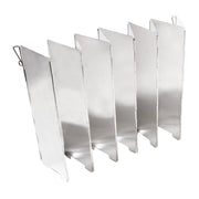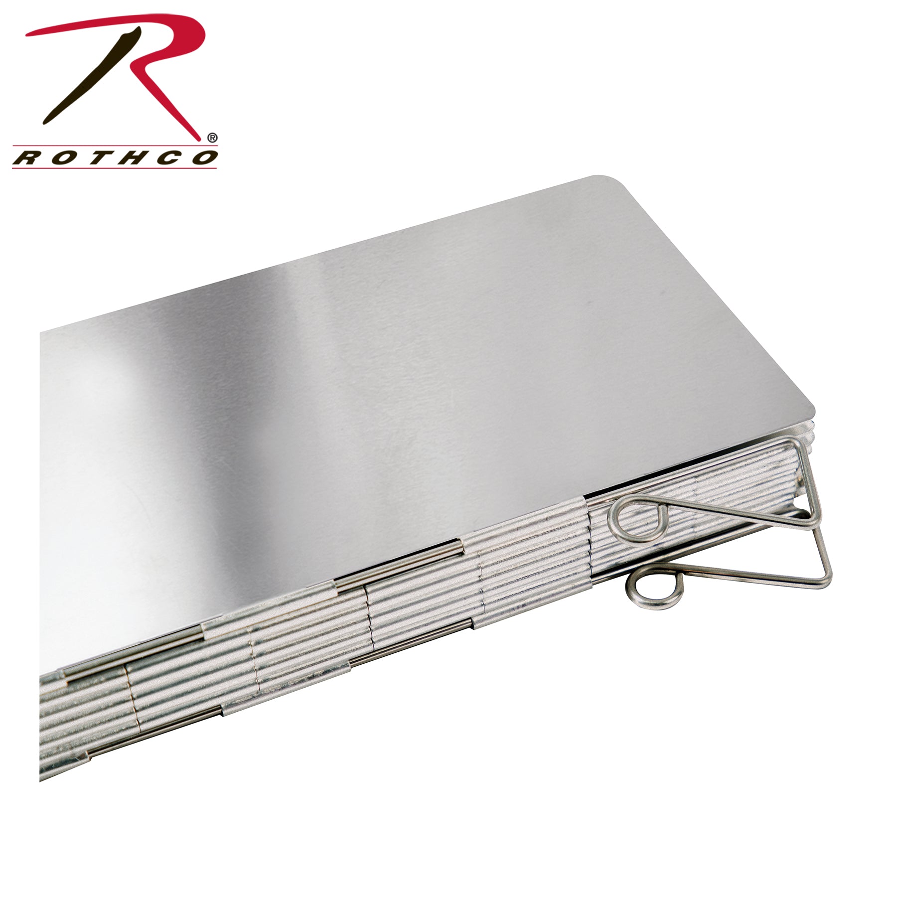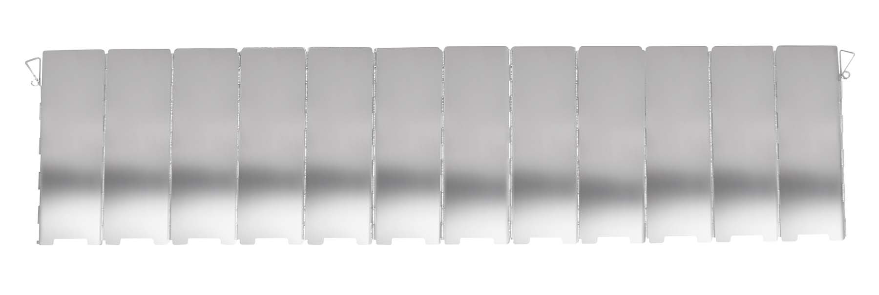 Rothco’s Camp Stove Folding Wind Screen provides all-encompassing wind protection that insulates your stove flame so you can cook with confidence at your campsite. This camping accessory is designed to help preserve fuel efficiency and boil and cooking times in the wilderness. The windscreen features 12 panels held together by aluminum rods that are removable to adapt to the size of your camp stove (Each panel measures 9.5 inches x 3.25 inches x 1/16 inches). Two nine-inch aluminum stakes on each end keep the camping stove windscreen secure around your flame. .25-inch indents at the bottom of each panel of the portable camp windscreen enhance air circulation to optimize fuel use. A convenient carrying pouch is included for easy packing, the lightweight windscreen is perfect for camping, backpacking, and more.
