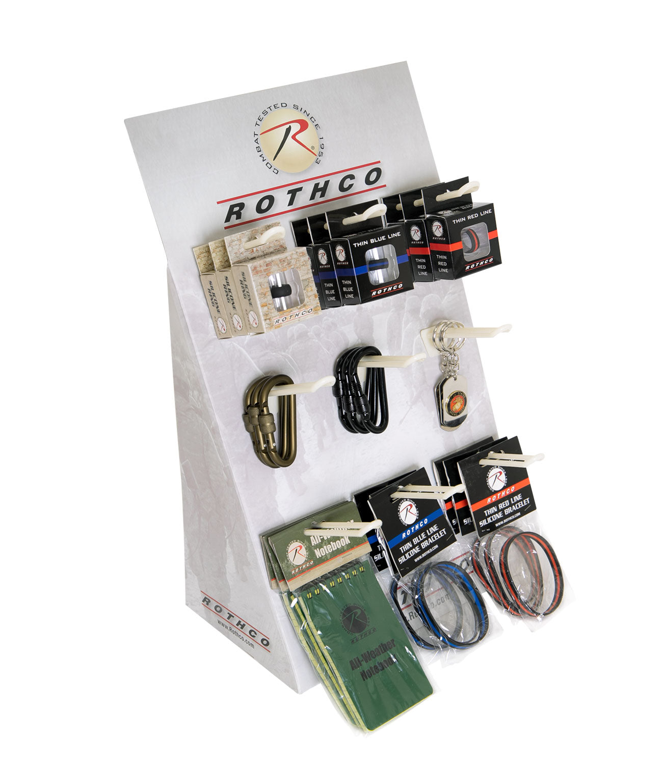Showcase All Your Favorite Rothco Products With Our Counter Display. Ideal For Displaying Paracord Bracelets, Dog Tags, Carabiners Etc. The Display Features A Full Color Corrugated Cardboard Display With 9 Plastic Pegs, Each Peg Is 4" Long.