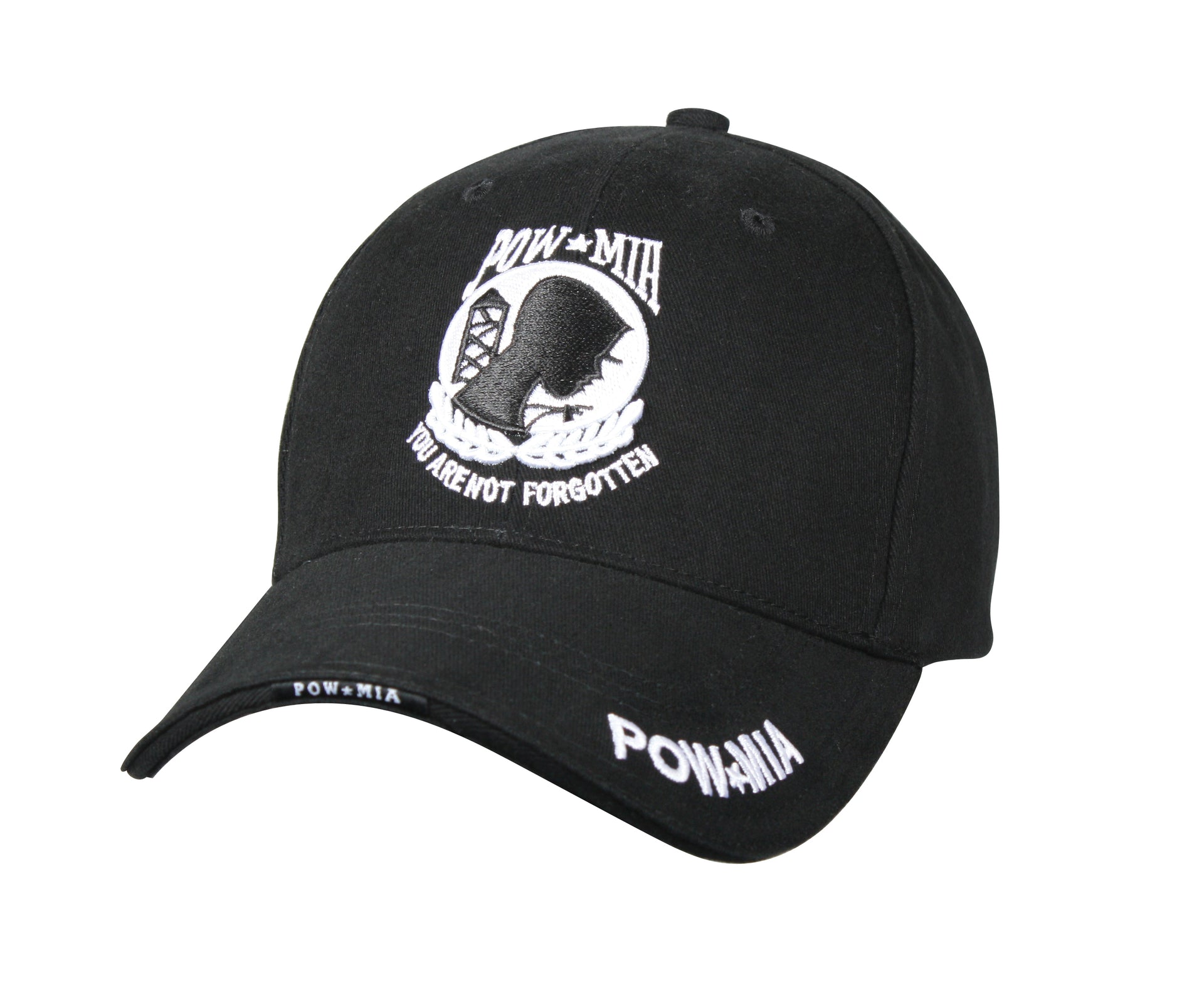 Rothco’s Deluxe POW/MIA Low Profile Cap is made from a durable 100% brushed cotton twill, featuring a raised 3-D embroidered POW/MIA insignia on the front panel as well as “POW*MIA” on the brim. This military hat also features a hook and loop closure in back for adjustability.