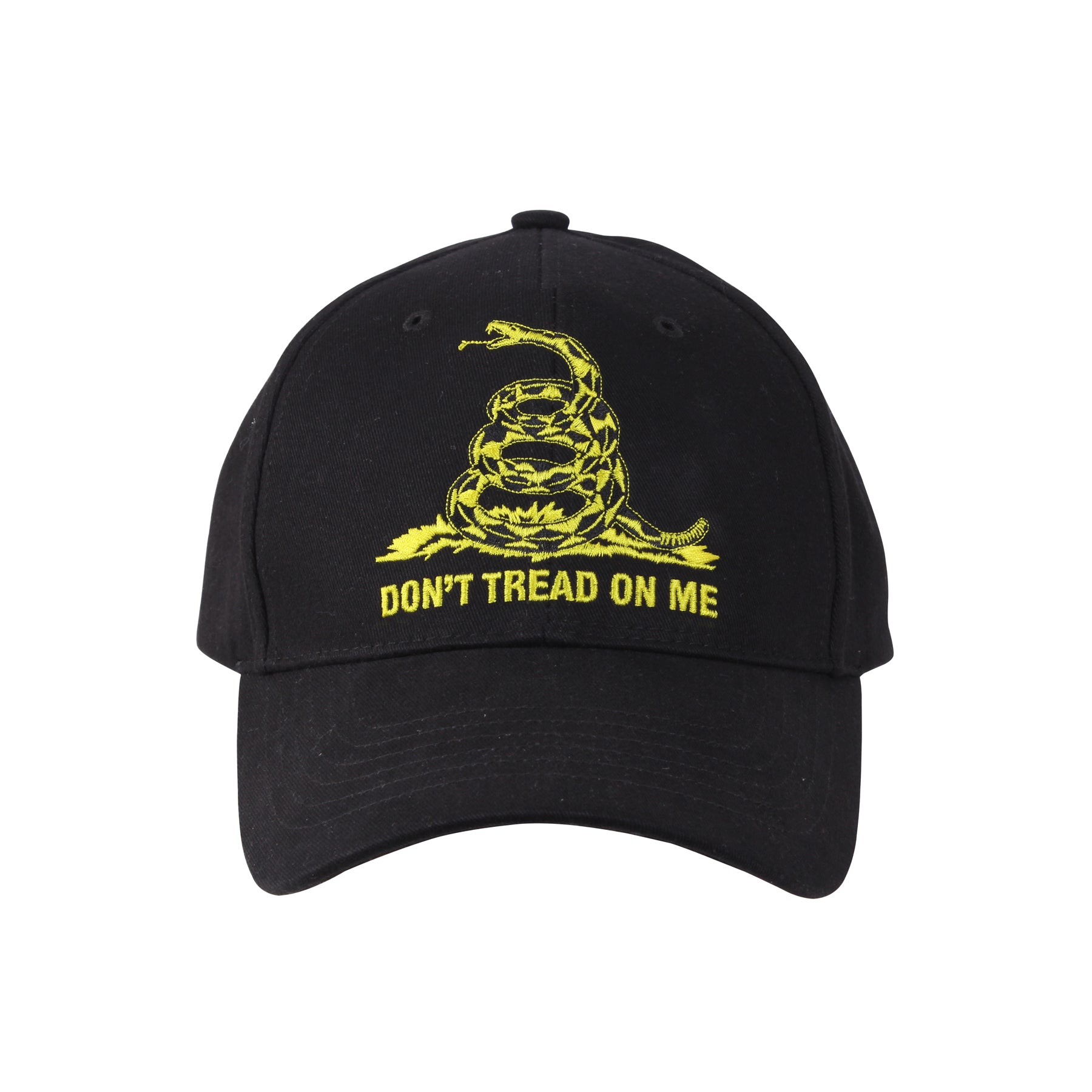 Rothco's Don't Tread On Me Low Profile Cap brings the historic symbol of the Gadsden Flag to life. This iconic yellow coiled rattlesnake and the bold "Don't Tread On Me" lettering, dating back to the American Revolution, are intricately embroidered on the front of the patriotic cap. The lightweight and durable brushed cotton twill material ensures long-lasting wear, while the internal sweatband provides superior comfort by keeping moisture away from your eyes. With 4 reinforced vent holes, the baseball hat allows for better airflow, keeping your head cool in any situation. Designed to fit most head sizes, the low profile cap features an adjustable hook & loop strap on the back for a perfect fit. This outdoor cap combines classic style with patriotic symbolism, making it a great addition to your wardrobe. Keep your head in the game with Rothco’s collection of headwear and accessories. Designed with precision and purpose, our headgear is built to withstand the harshest conditions. Whether you’re tackling the cold in one of our Watch Caps or Balaclavas, or out on a mission in a Boonie Hat or Fatigue Cap, our diverse range of headwear provides unmatched comfort and protection for everyone from military personnel to outdoor enthusiasts.