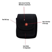 Stay prepared by having quick access to your Narcan with our Double Narcan Nasal Spray Pouch. The Narcan pouch features an inner divider for separating two doses (4mg each) of Narcan nasal spray – Spray Not Included. Within Arm’s Reach: The Narcan spray is designed to fit around standard duty belts up to 2 inches, keeping your medical supplies alongside you for emergency use. This case is great for law enforcement, public safety, EMTs, active-duty personnel, and more. Safe and Secure: These double Narcan pouches feature a front flap with a hook & loop closure for easy and fast access while ensuring your Narcan spray stays in place when on duty. Strong Material Construction: Made of 600D polyester, these Narcan nasal spray pouches are built to withstand the rush of medical emergencies while protecting your Narcan from dirt and debris. Ready for Duty: A red 6-point Star of Life logo is displayed on the front of the Narcan utility pouch for quick and easy identification. Measuring 4 inch x 4.5 inch x 2.5 inch, the medic case can also hold additional emergency supplies when carrying a single dose of Narcan.