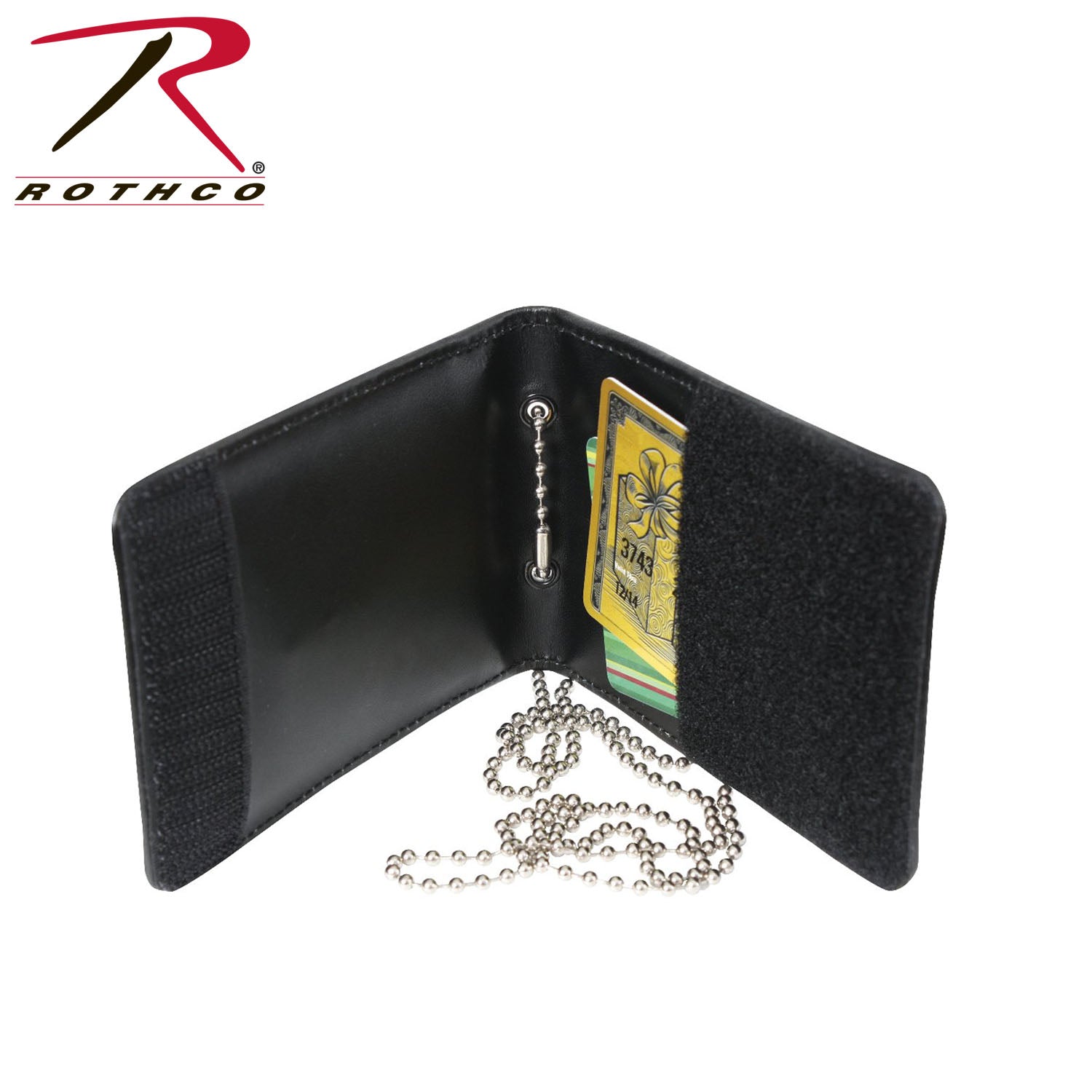 Rothco’s Leather Neck ID Badge Holder is designed for convenience and security, making it easy to keep your badge accessible at all times. This high-quality holder features a bi-fold design with a secure hook and loop closure, ensuring your ID and badges are safely stored. The clear window on one side allows for easy display of your ID card, while the cutout on the opposite side is perfect for securely holding badges. Inside, you'll find a slot for storing credit cards and money, providing extra functionality. The 33-inch chain allows the holder to be worn around the neck for easy access, but can also be stored in a small pocket inside the holder. Additionally, the holder can be worn on a belt for added convenience, making it versatile and practical for various settings.
