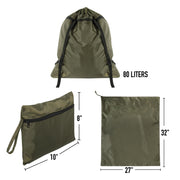 A lightweight yet durable laundry bag makes carrying clothes easy with convenient backpack straps.