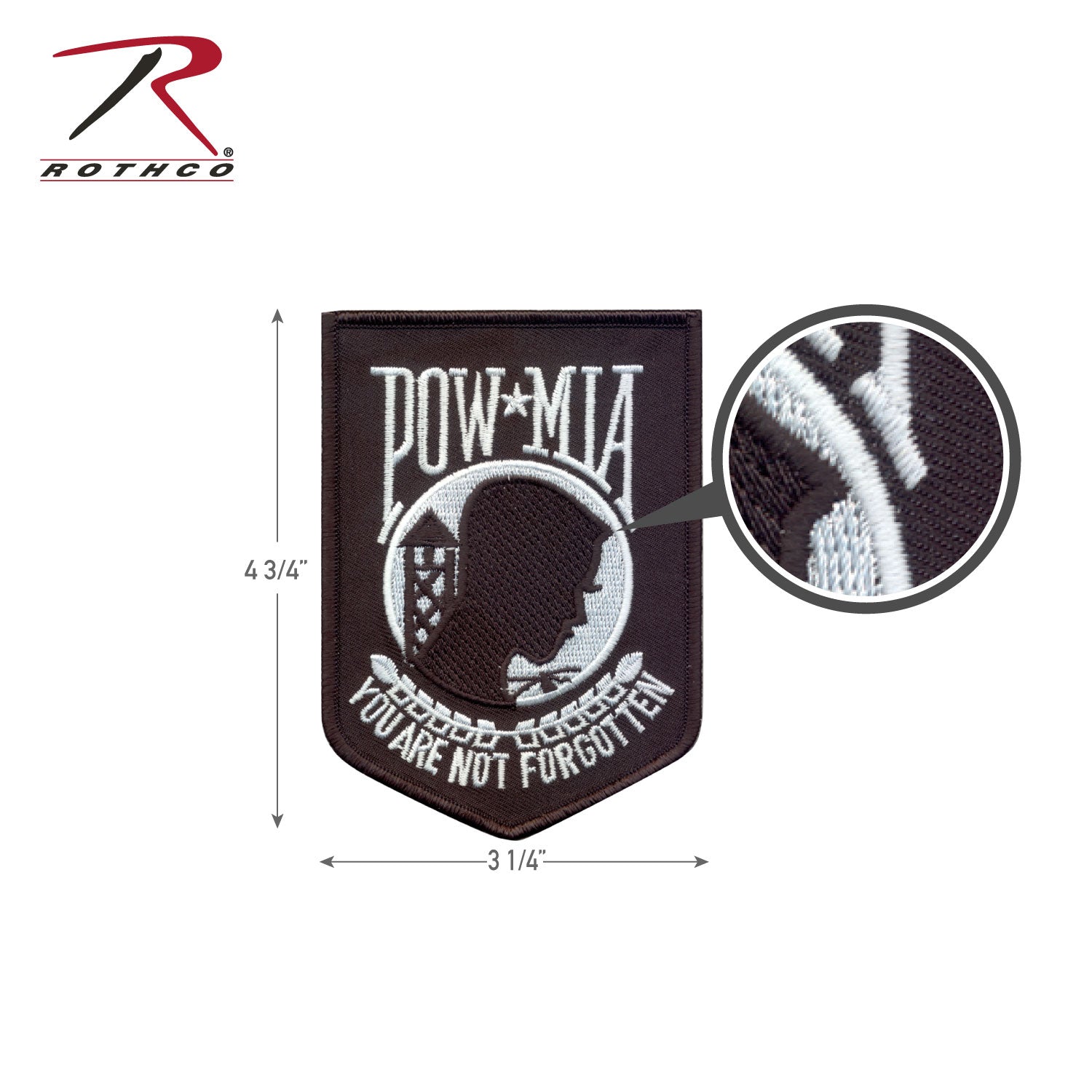 The POW-MIA Patch is designed as a symbol of citizen concern about US military personnel taken as prisoners of war or listed as missing in action. A fitting way to honor those left behind, this military patch includes an iron on/sew on glued backing for easy application. The text “POW-MIA You Are Not Forgotten” is embroidered on the front of the patch, using 100% cotton thread. This POW-MIA military patch measures approximately 4.75” x 3.25” and is constructed of a durable cotton/polyester blend.