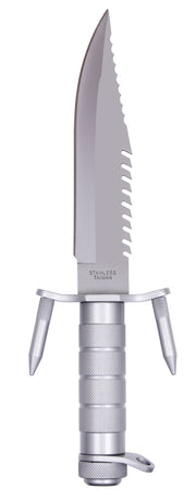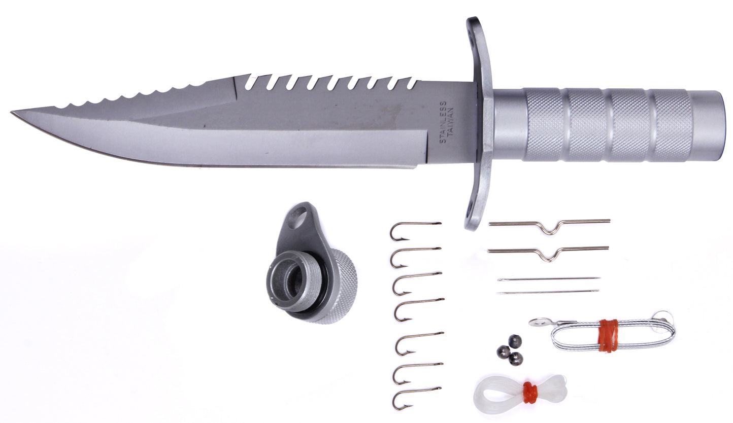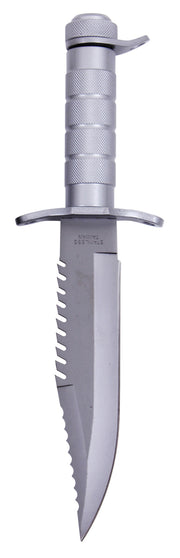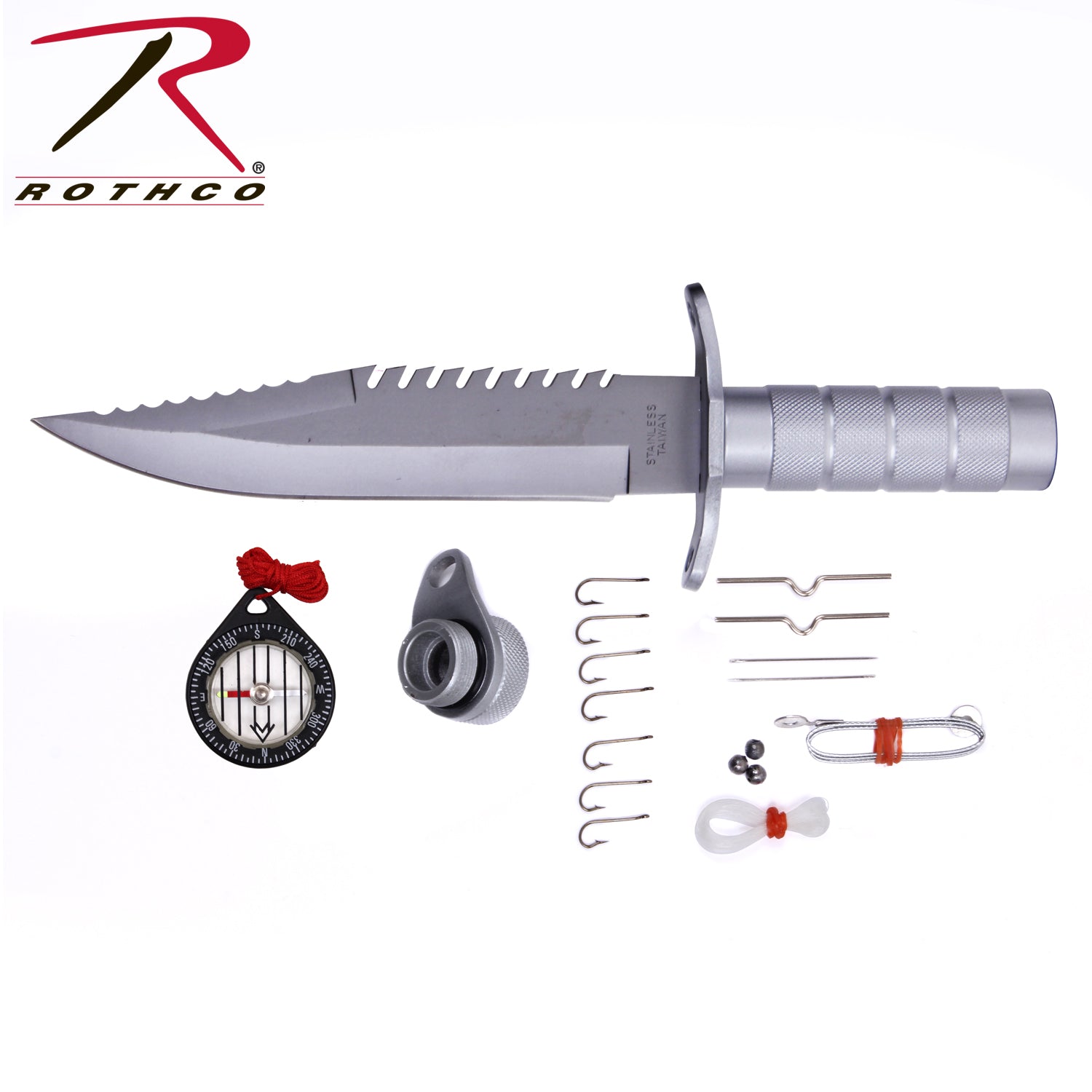 Rothco's Ramster Survival Knife is an indispensable tool for outdoor enthusiasts. This robust survival knife features a durable stainless steel blade measuring 7 1/2 inches, designed to handle the toughest tasks. What sets the Ramster apart is its hollow steel handle, which contains essential survival items such as a compass and fishing hooks, providing you with critical tools in the palm of your hand. The camping knife comes with a nylon and plastic sheath that includes pouches and sharpening stones, ensuring your blade stays sharp and your gear organized. Whether you're embarking on a hunting trip or preparing your bug out bag, the Rothco Ramster Survival Knife is the ultimate companion. Please note, this item is restricted for export and cannot be sold for use in some countries outside the U.S. Contact Rothco for details.