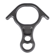 Big enough to handle the largest ropes--two of them. Extended horns on the upper ring make tying off a snap by preventing the rope from sliding up and locking off. Dual holes on the tie-in end allow the 8-Ring to remain attached to the harness while threading the rope, preventing loss of the device in extreme conditions. The industry standard for rescue grade descenders.