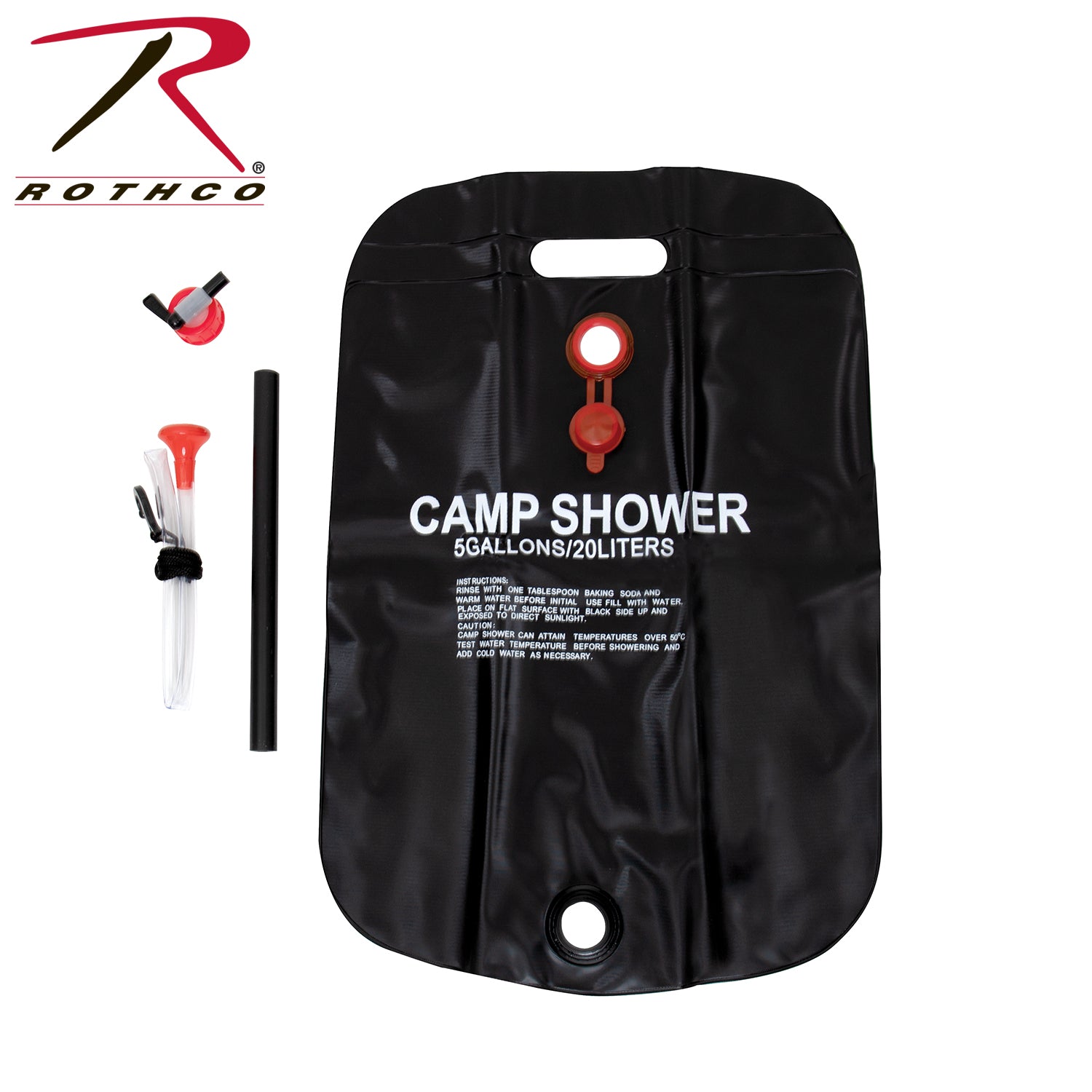 Another great camping and survival item! Rothco's Solar Camp Shower includes a hose and shower head, On/Off Control, and holds approximately 5 Gallons of water for use.