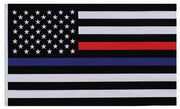 The Thin Blue Line and Thin Red Line are symbols of respect and support for Police, Law Enforcement Officials and Firefighters; show your support with the Rothco's Thin Blue Line & Thin Red Line Flag, which measures 3' x 5', is made from a non-shiney polyester material. The Blue and Red Line Flag is a double stitched US Flag with a blue and red line across the middle. The TBL/TRL Flag looks great on a flagpole or in a window.