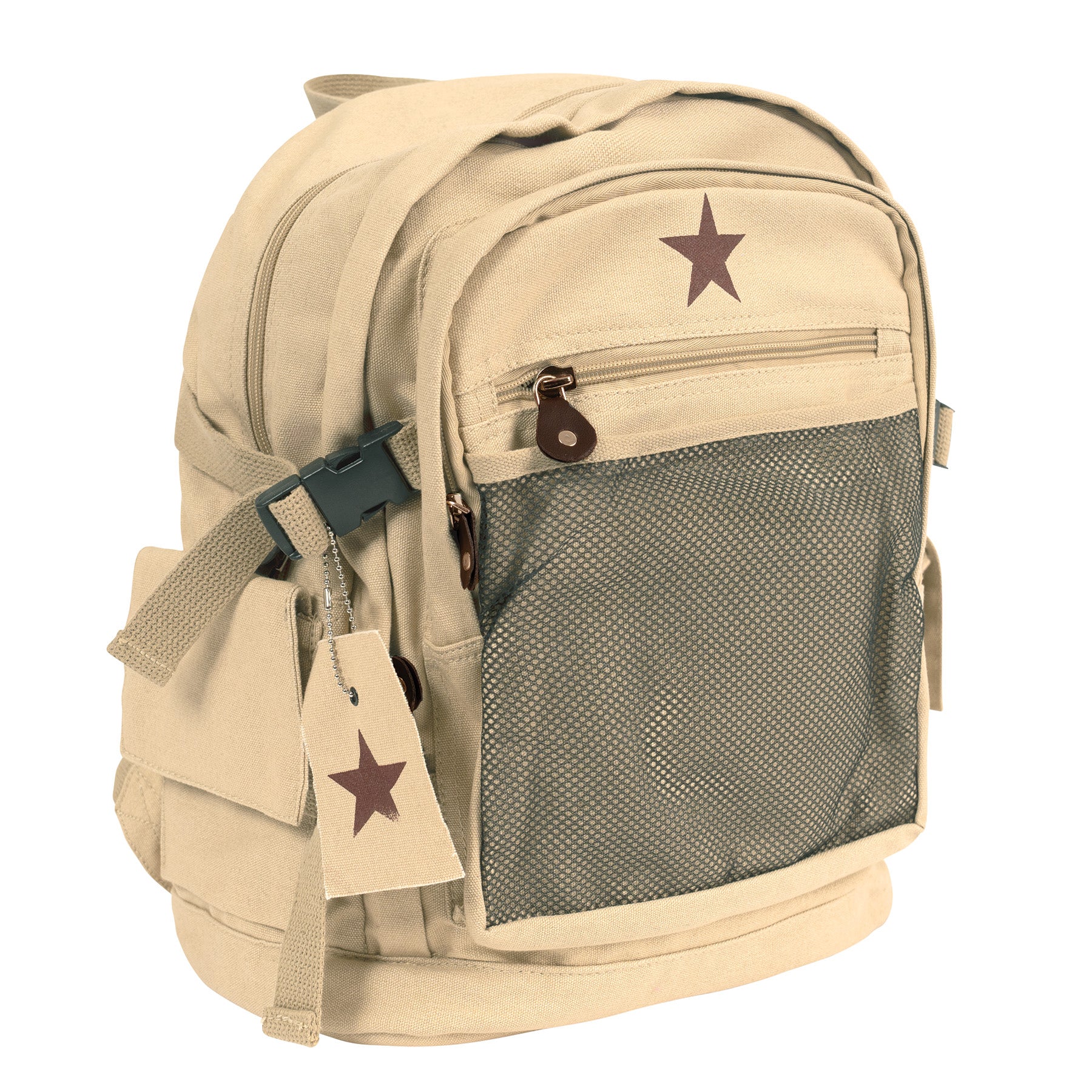 Be a star with Rothco's Vintage Canvas Backpack. This classic canvas bag offers a ton of storage and organization.