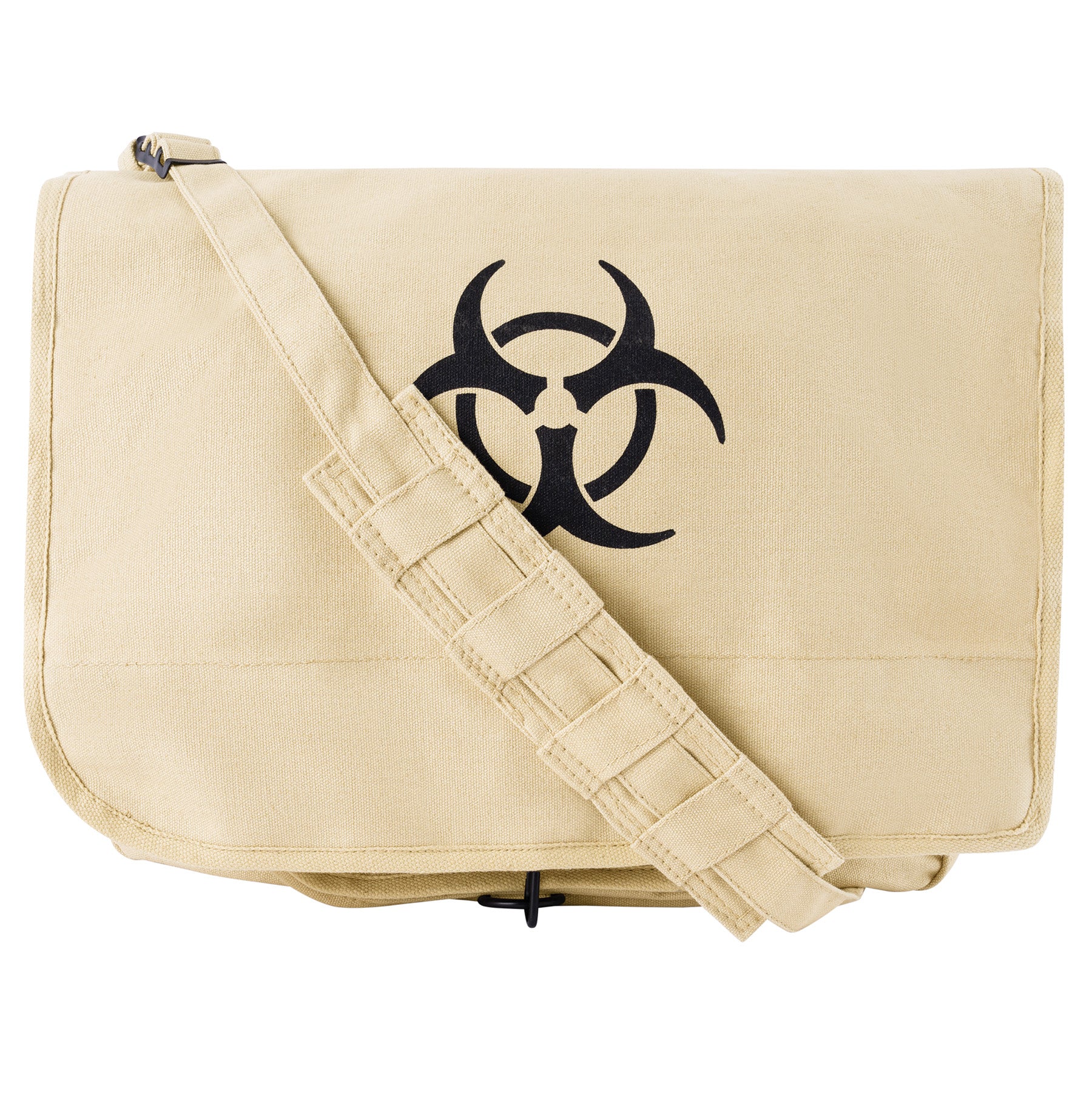 Rothco’s Vintage Canvas Bio-Hazard Bag. Featuring a high-impact "Bio-Hazard" symbol on the front flap, this bag blends rugged style with everyday functionality. The spacious interior offers 3 inner compartments to organize your essentials, plus an outer snap-closure pocket for quick-access items. Built from durable vintage canvas and sized at 15" x 11" x 4", it’s the perfect companion for school, travel, or casual everyday carry. Adjustable shoulder straps ensure a comfortable fit wherever the day takes you.